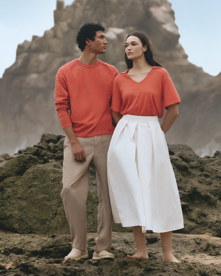 Orange Zymba polo shirt, made from a blend of organic cotton and baby alpaca. This...