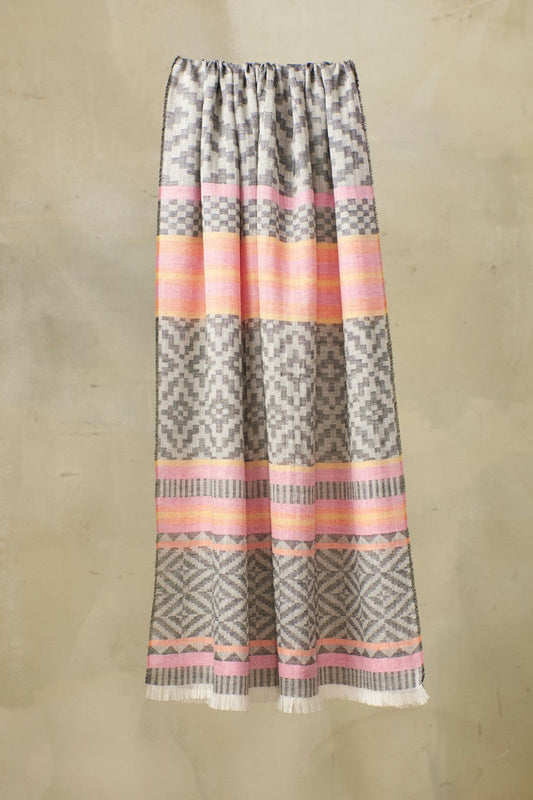 This light de baby alpaca and silk shawl, with subtly graduated ethnic patterns, is ideal...