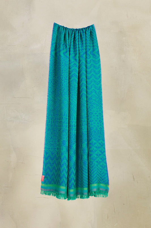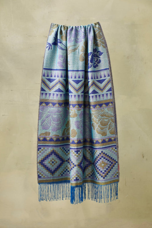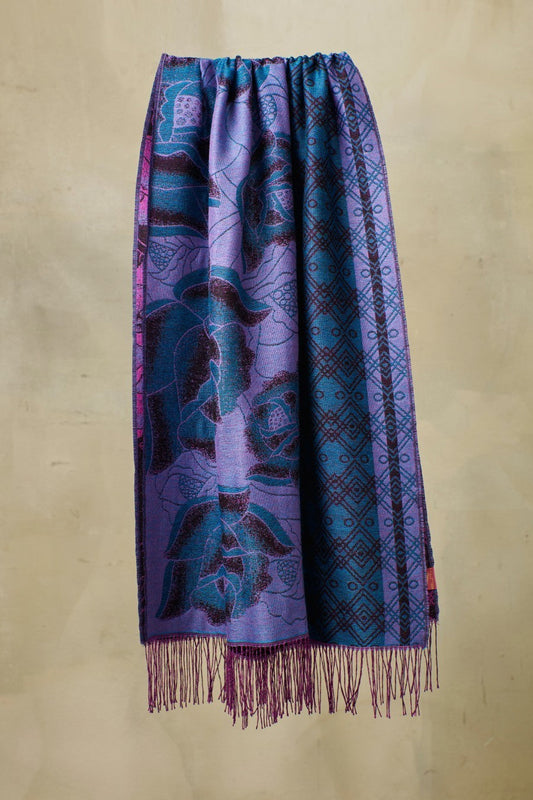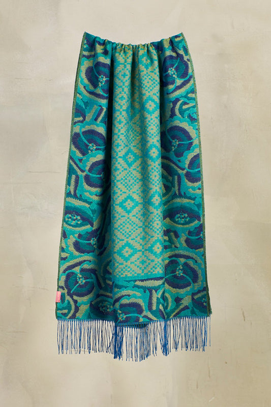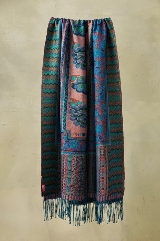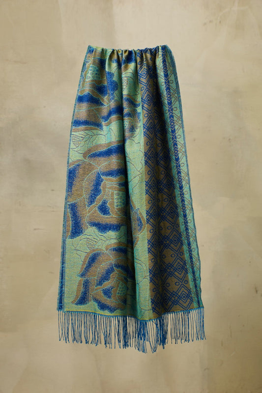 Floral designs and geometric patterns harmonise beautifully on our Teal shawl, a garment perfect for...