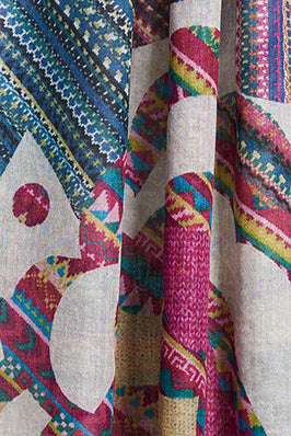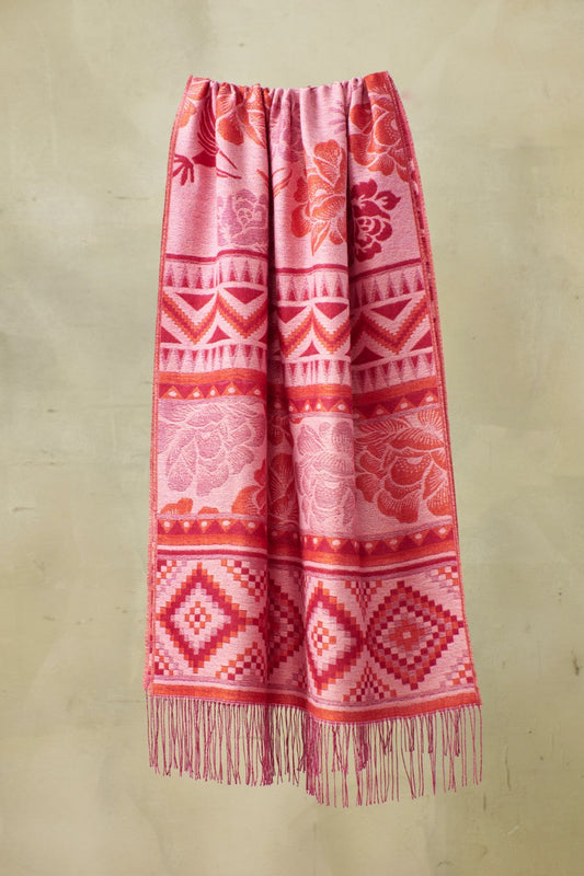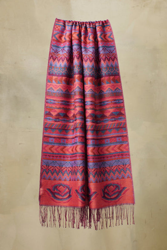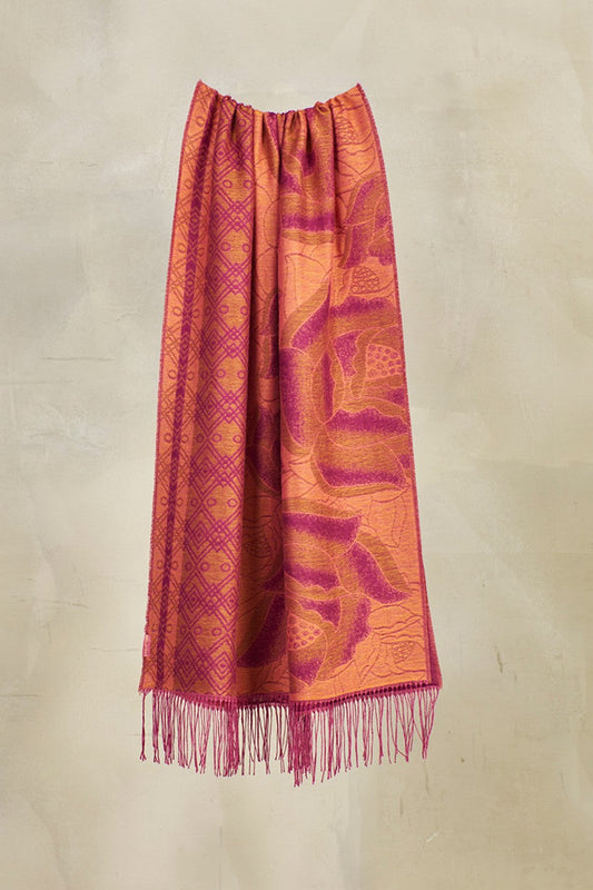 This elegant shawl combines floral and geometric designs in intense tones, which makes it ideal...