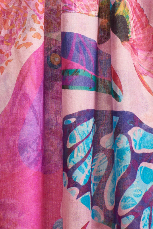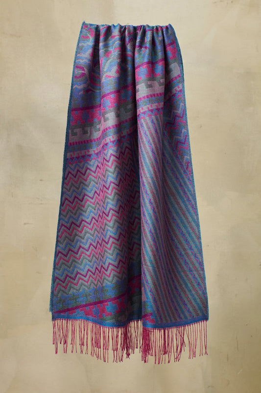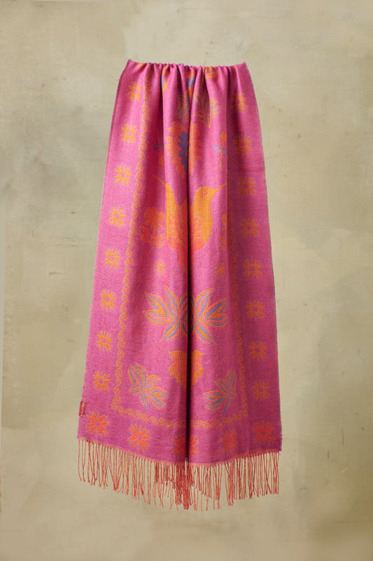 Impressive colors from the Amazon are reflected in this lightweight baby alpaca and silk pashmina...