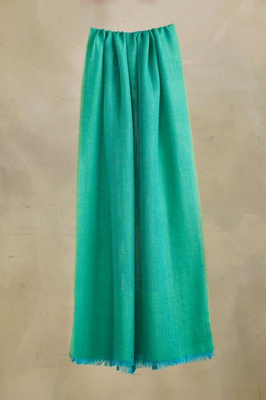 Teaberry Stole in turquoise tone, featuring a solid color and fine fringed edges that provide...