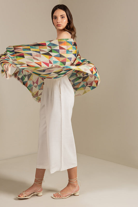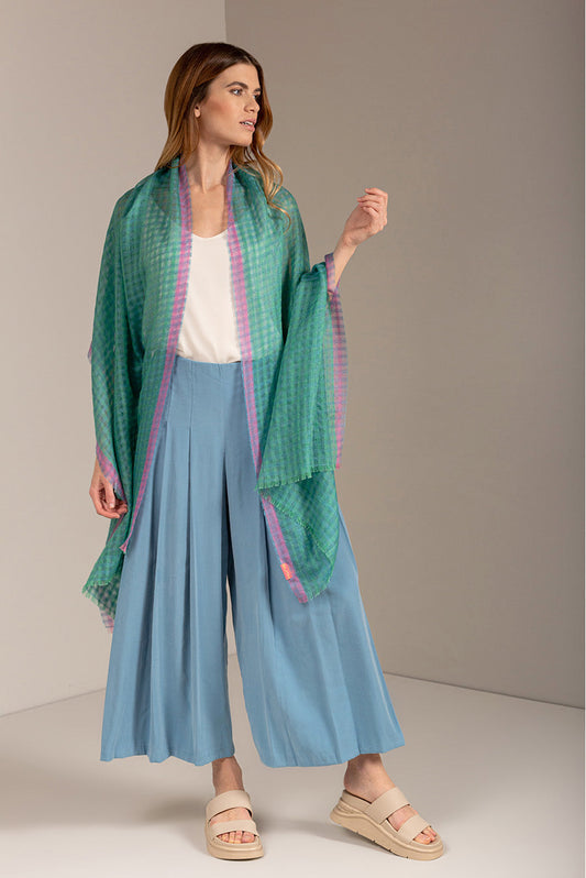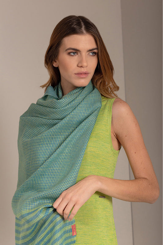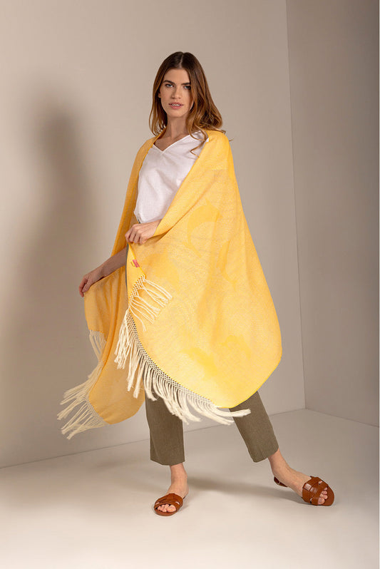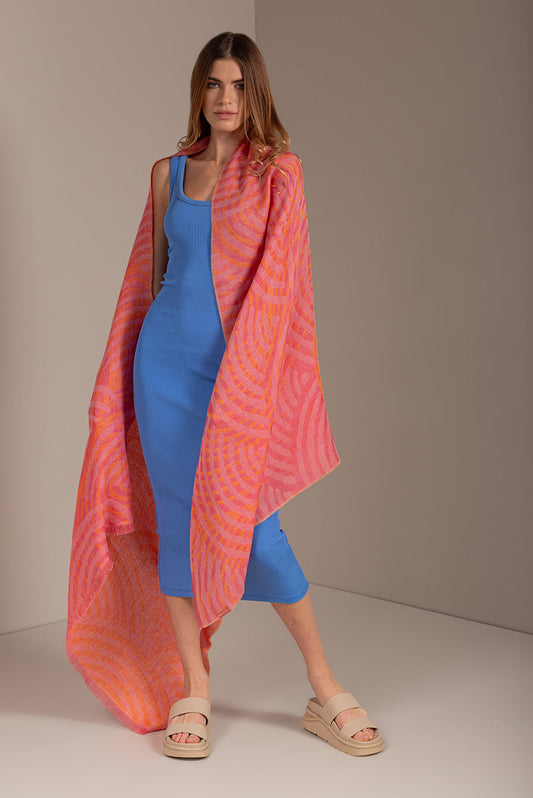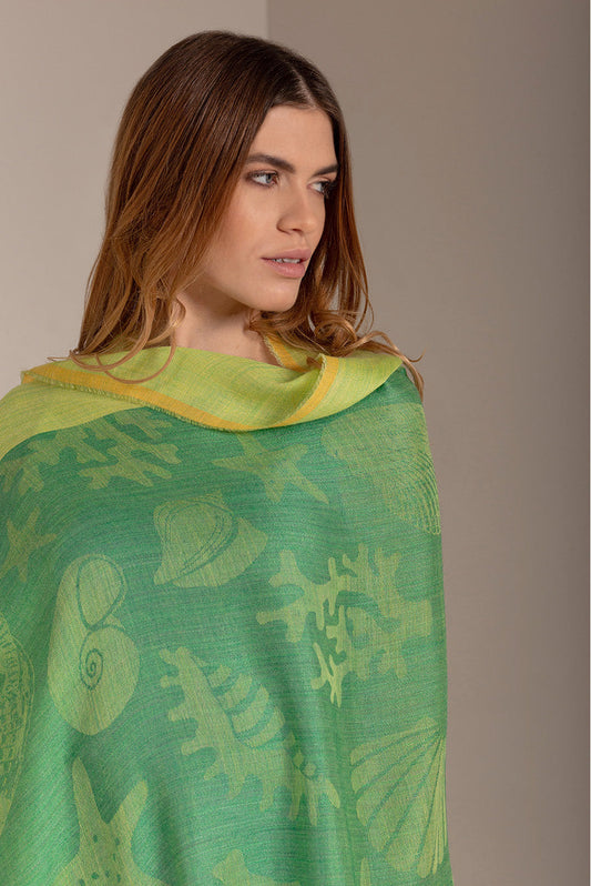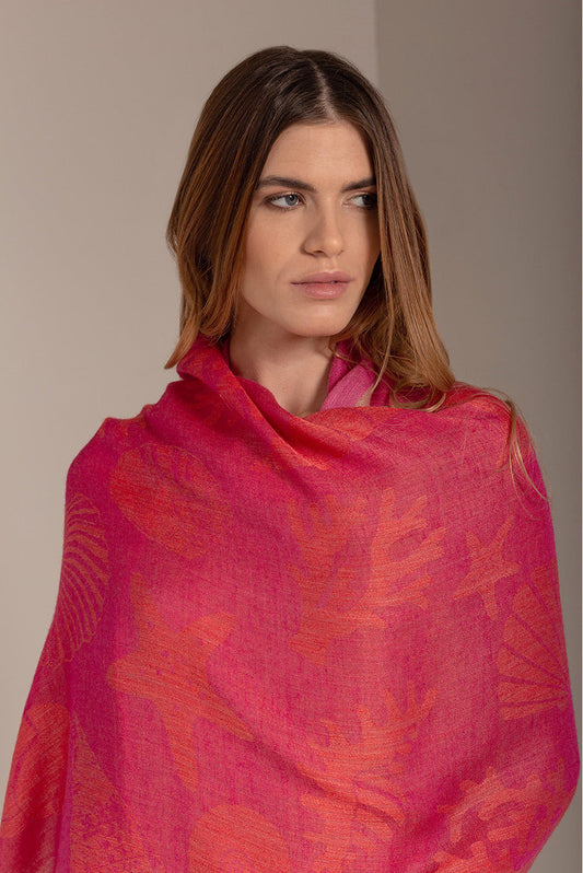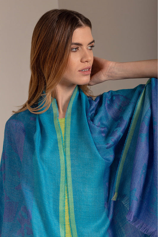 The bright colours and motifs of our Umor shawl bring the freshness of the ocean...