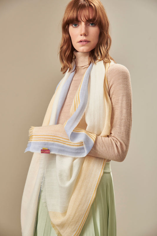 Our Ultramarino shawl is available in four radiant colours to liven up your summer days....