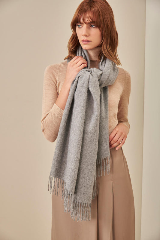 Elegant and lightweight stole in baby alpaca and silk, ideal for any occasion.