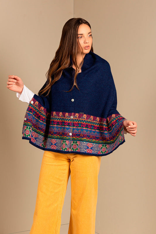 Our soft and light Umachiri shawl made of baby alpaca features a cheerful design in...