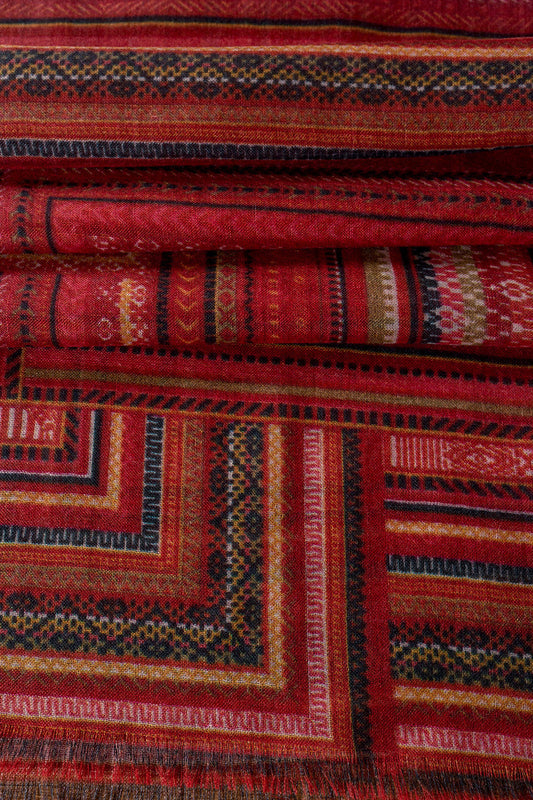 Made of baby alpaca and silk, our Vibra pashmina features a beautiful abstract jacquard design....