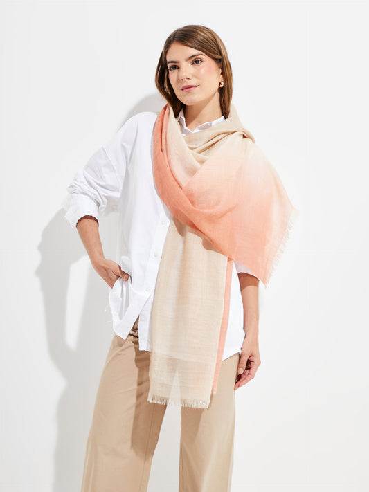 Light and silky, this pashmina features a subtle color gradient pattern. The flower design of...