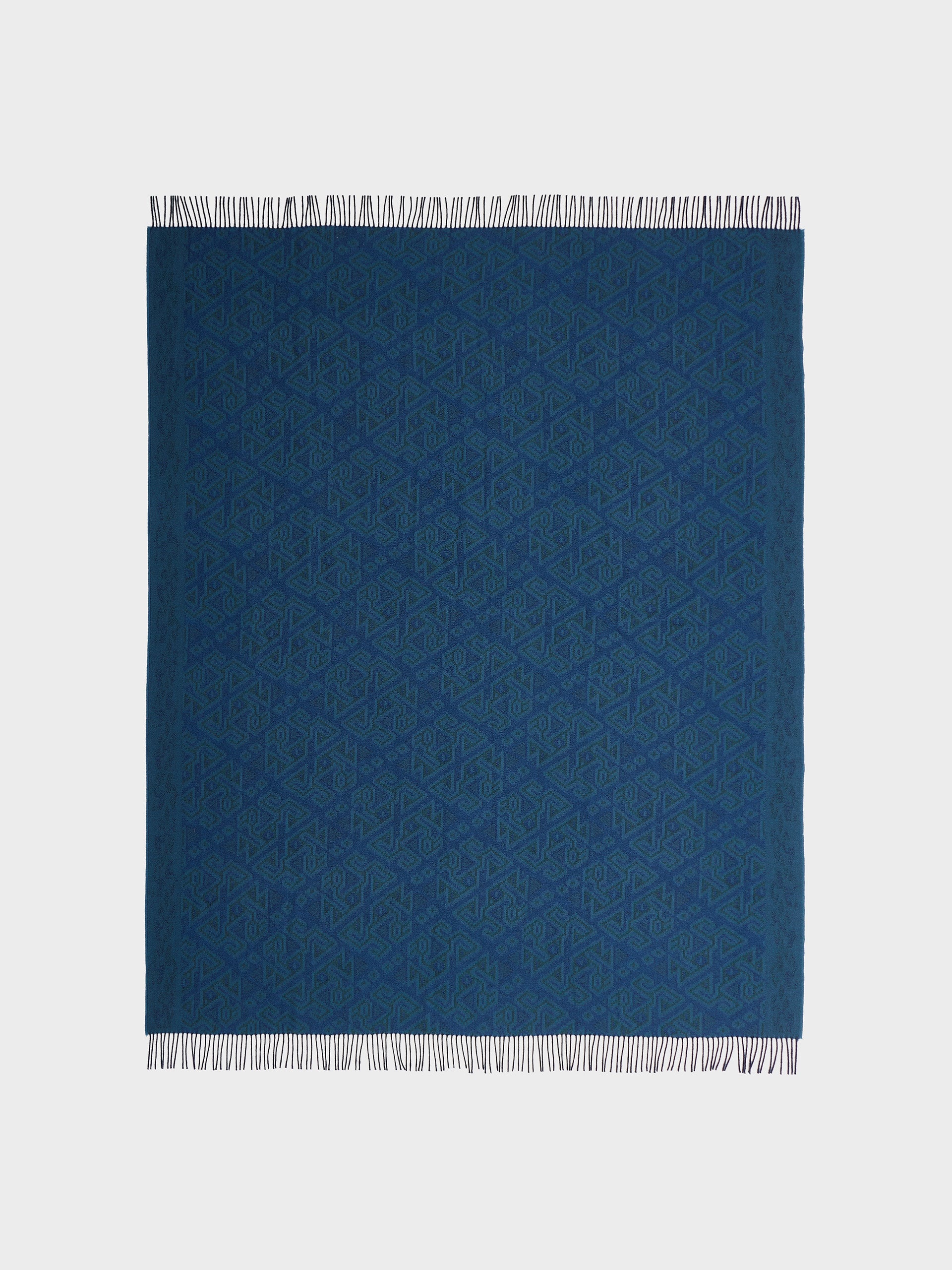 Chincha 2 blanket in blue, made from 100% baby alpaca using a double-sided Jacquard technique. Measuring 200/184 x 145 cm, it is inspired by the Chincha culture, evoking the richness of ancient traditions through a design with cultural identity. | Predominant material: Baby Alpaca