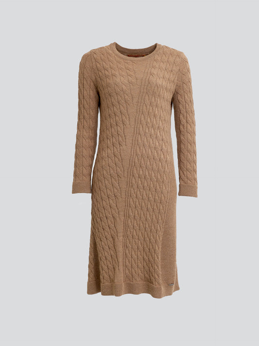 Zephir Dress in brown tone, featuring a semi-fitted cut at the top and a slightly...