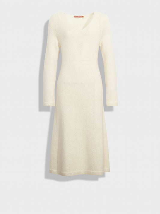 Zafina Dress in ecru tone, featuring a V-neckline and a slightly flared A-line skirt that...