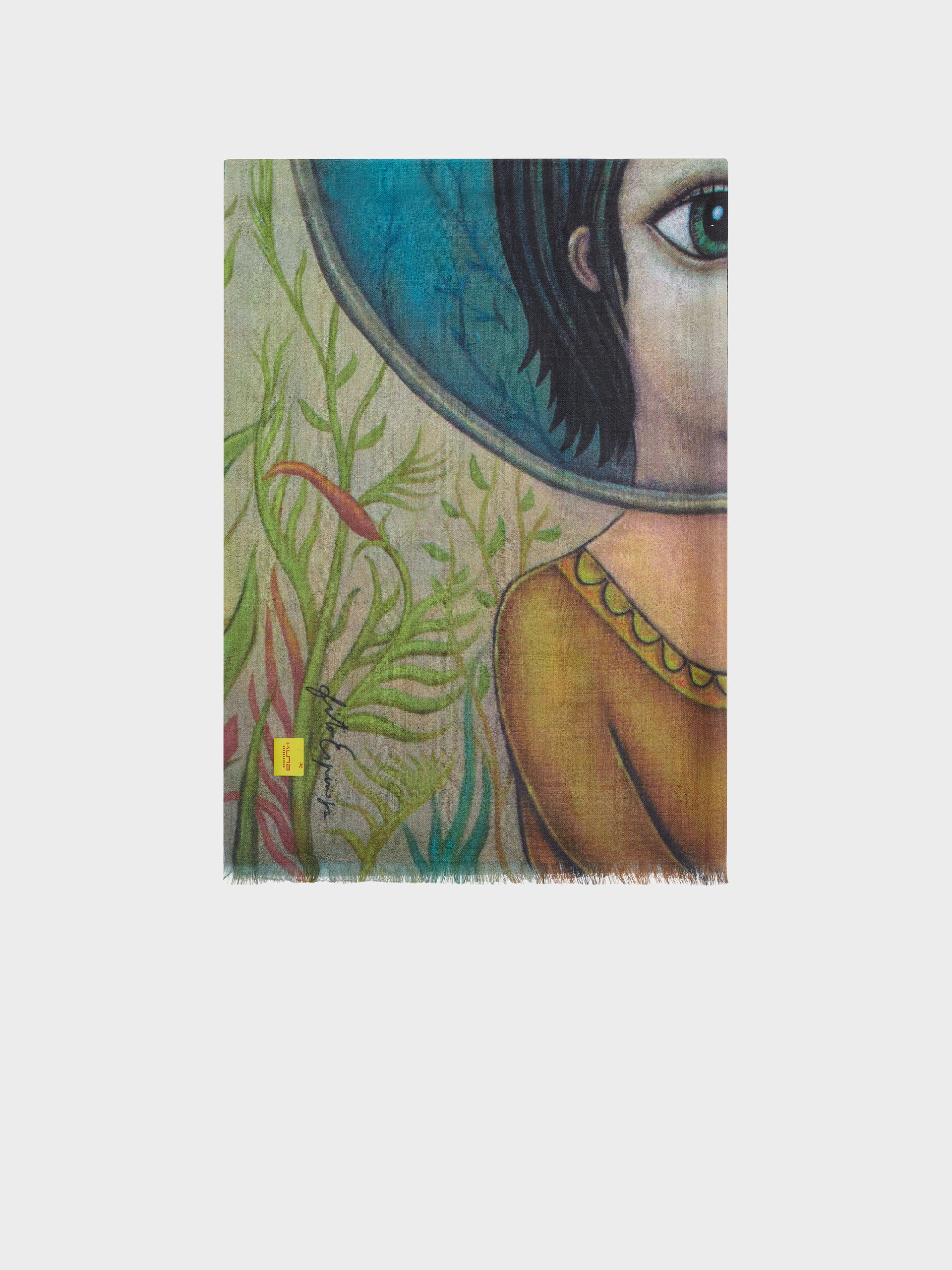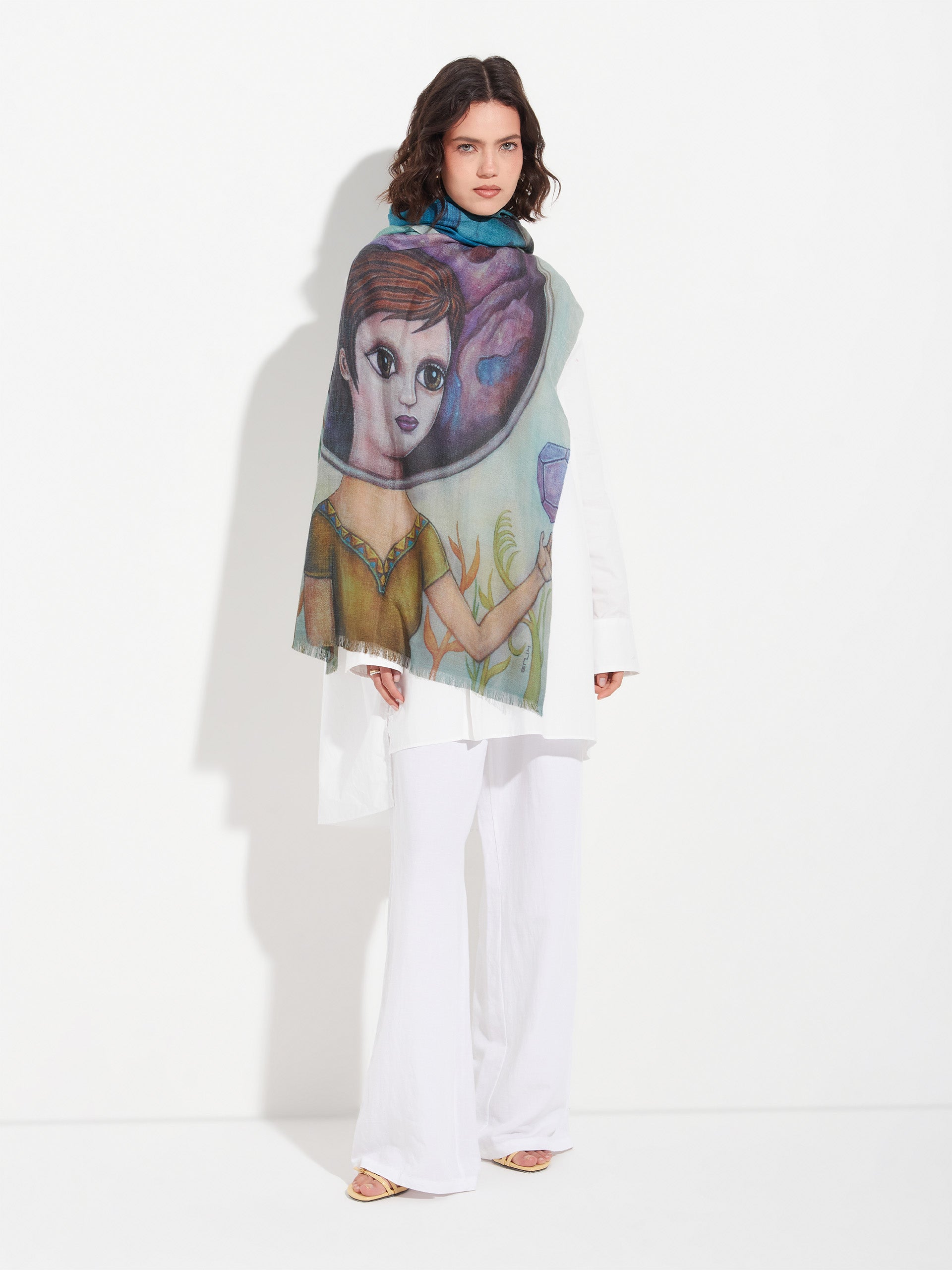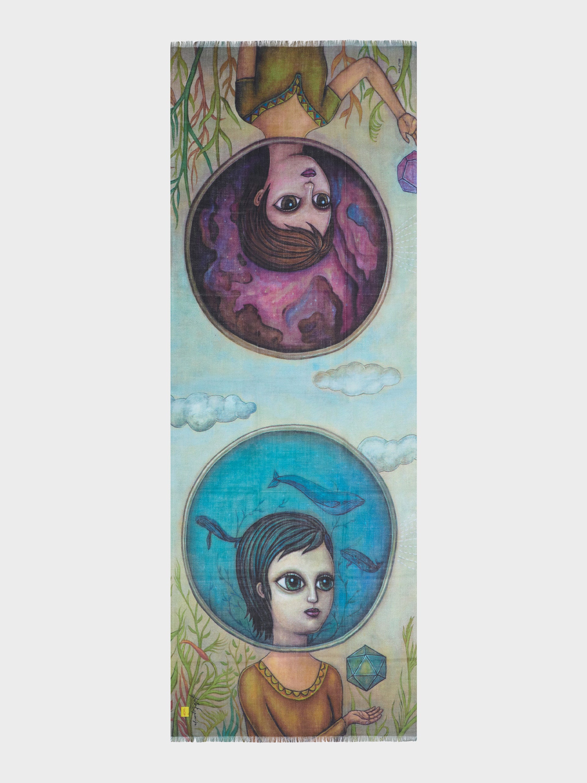 Two inner worlds of the same being reveal themselves in balance, showing their dual nature. Ocean and cosmos, water and ether, represent the primordial element from which life emerges in all its manifestations. This exquisite stole was inspired by our artist Fito Espinoza and is made from baby alpaca and silk. | Predominant material: Baby Alpaca