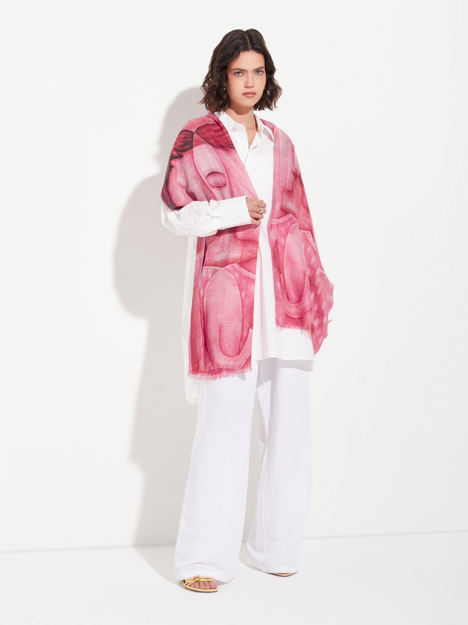 Magic arises at the intersection, the shared space. It is an intermediate gaze that occurs in the bond with the other and allows for joint creativity for the birth of something new. This fine stole was inspired by our artist Fito Espinoza and is made of baby alpaca and silk. | Predominant material: Baby Alpaca