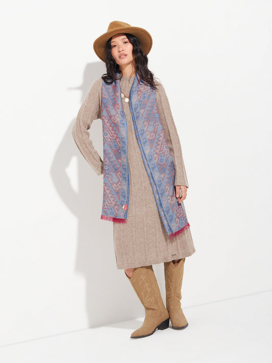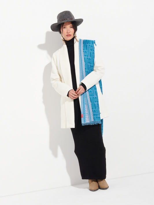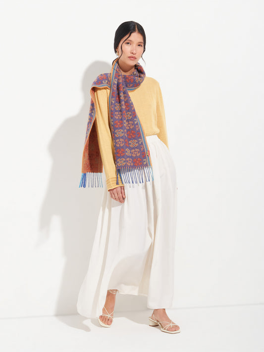 Chancay 36 scarf in blue, made from 100% baby alpaca using a double-sided Jacquard technique....