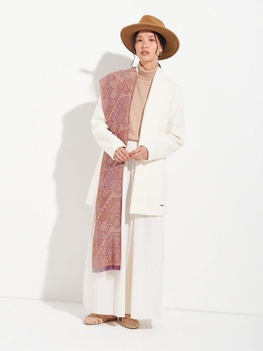 Chancay 36 scarf in fuchsia, made from 100% baby alpaca using a double-sided Jacquard technique....