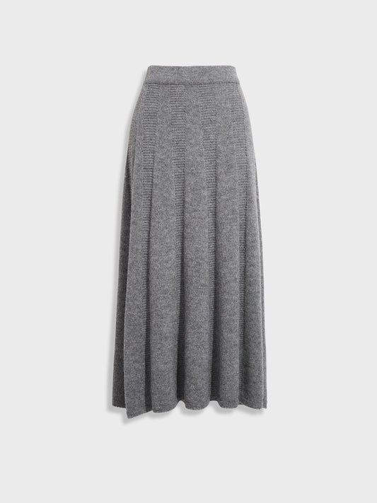 Brenda skirt in gray, knitted in jersey stitch with a classic half-English stitch design. Made...
