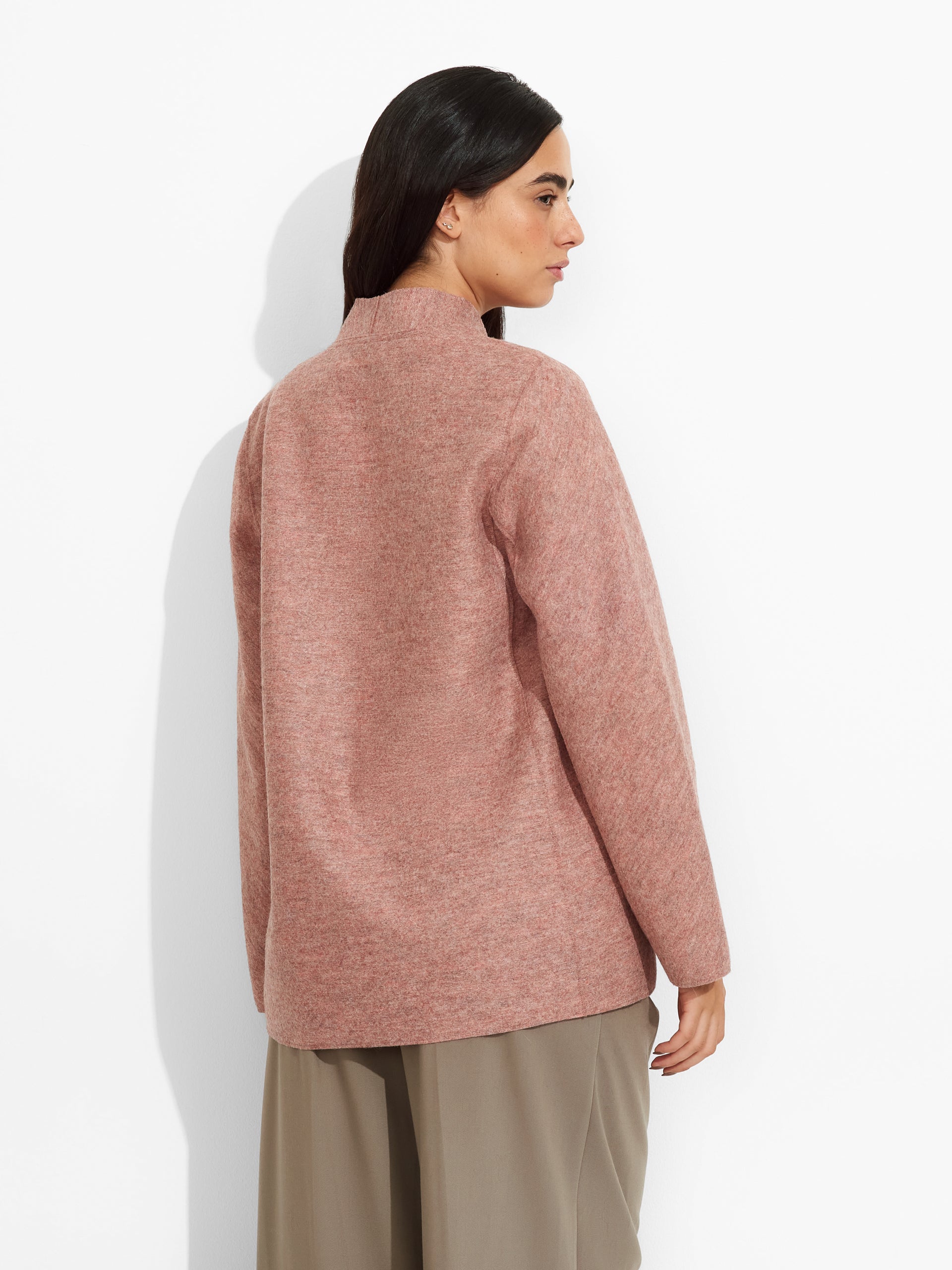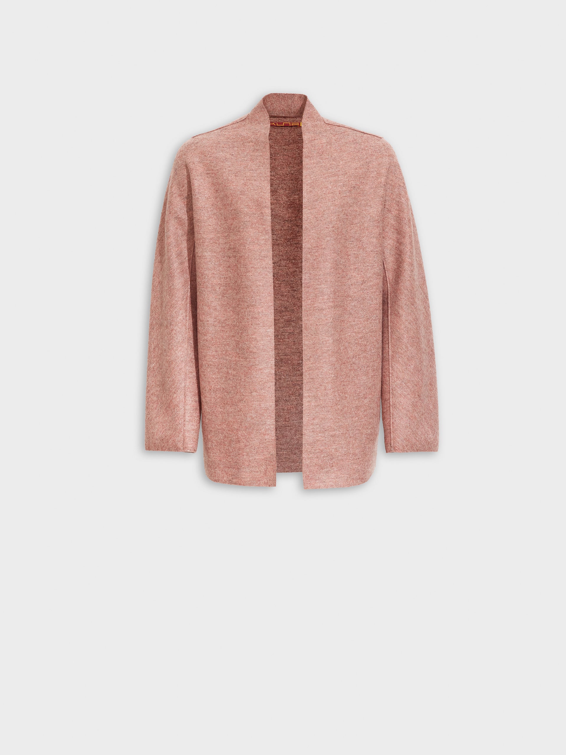 Zadig Coat in pink tone, distinguished by its relaxed, open-front cut and side seam pockets. Crafted from a blend of alpaca and wool, it offers a soft and warm texture. | Predominant material: Alpaca