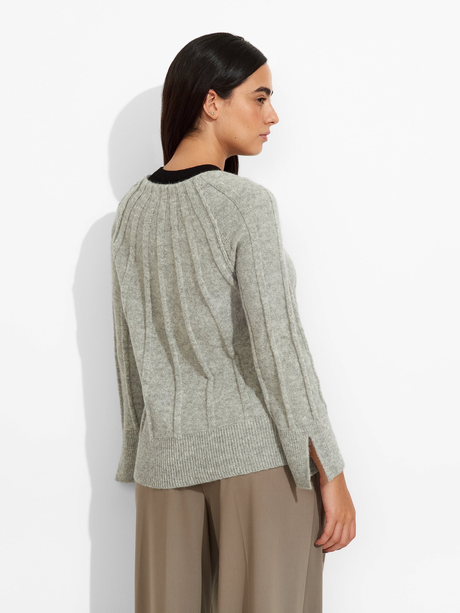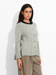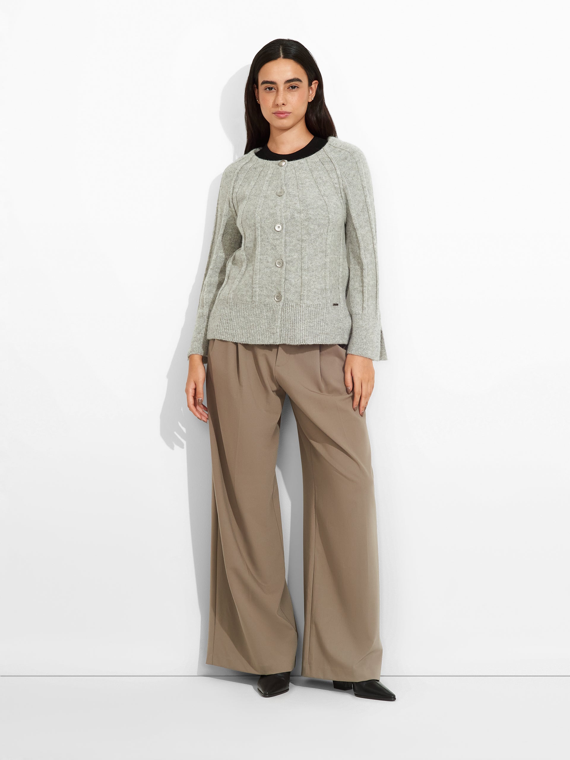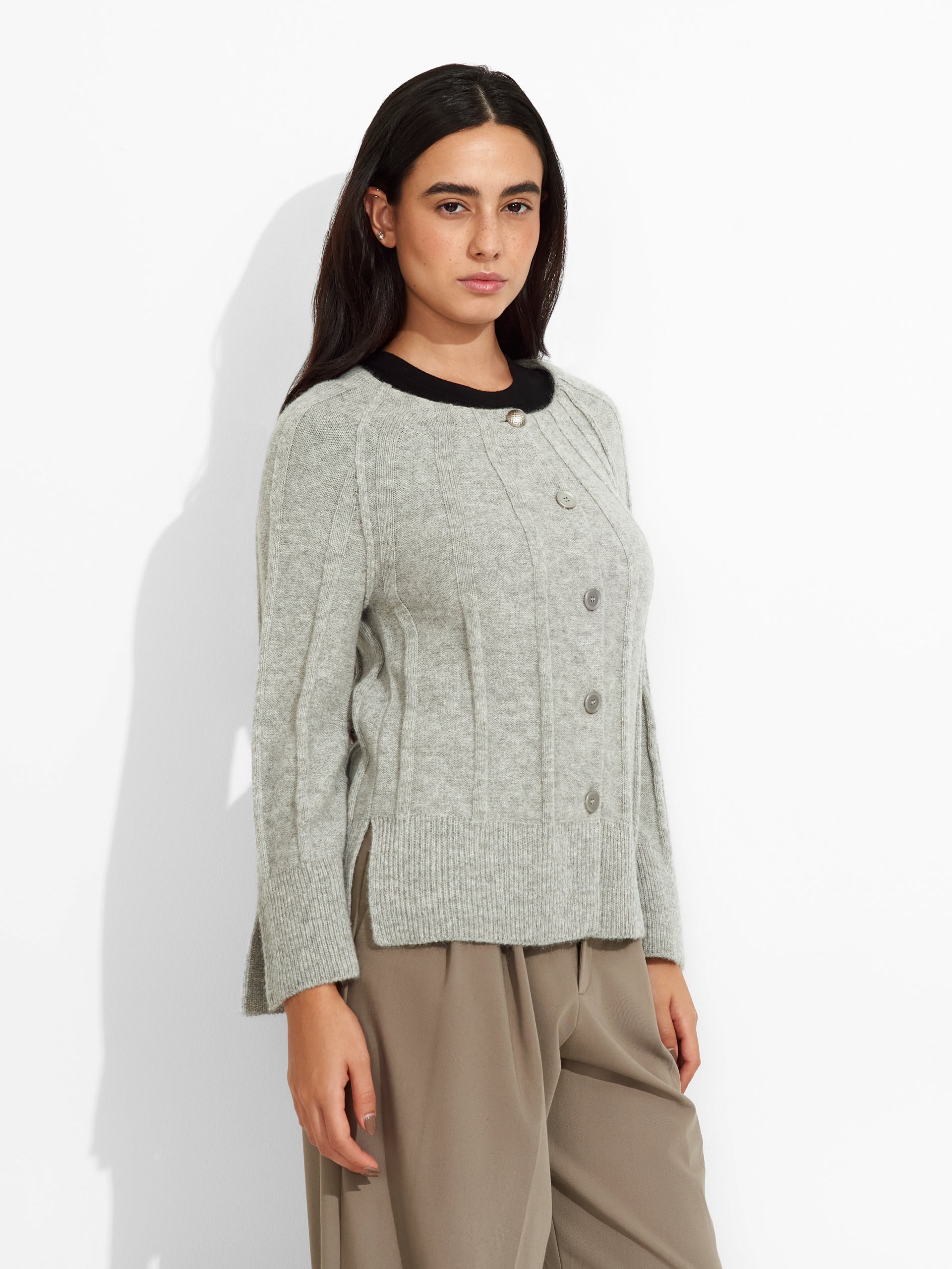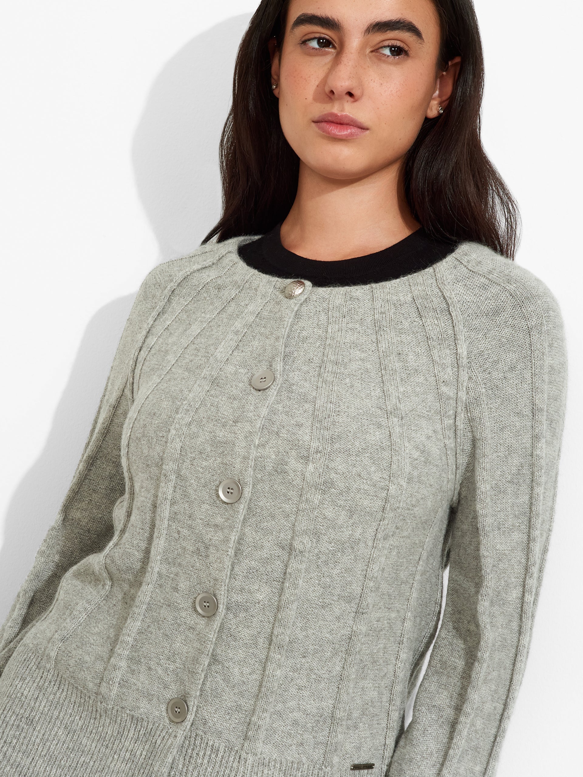 Zephir Cardigan in gray tone, designed with a round neck and metal buttons. Crafted from baby alpaca, it offers warmth and exceptional softness. | Predominant material: Baby Alpaca