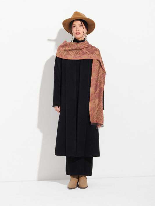 Chancay 37 scarf in orange, made from 100% baby alpaca using a double-sided Jacquard technique....