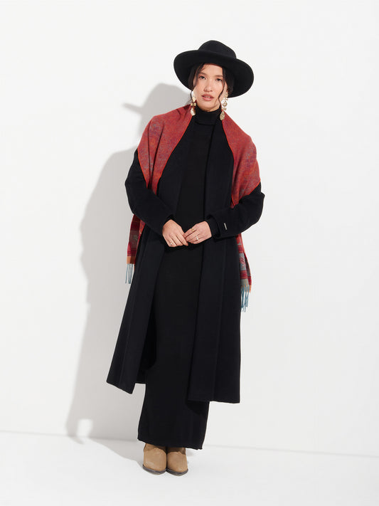 Chincha 2 blanket in red, made from 100% baby alpaca using a double-sided Jacquard technique....