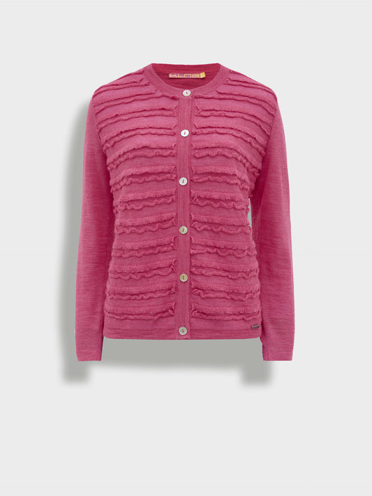 Zarina cardigan in fuchsia, made from baby alpaca and silk. It features a round neckline...