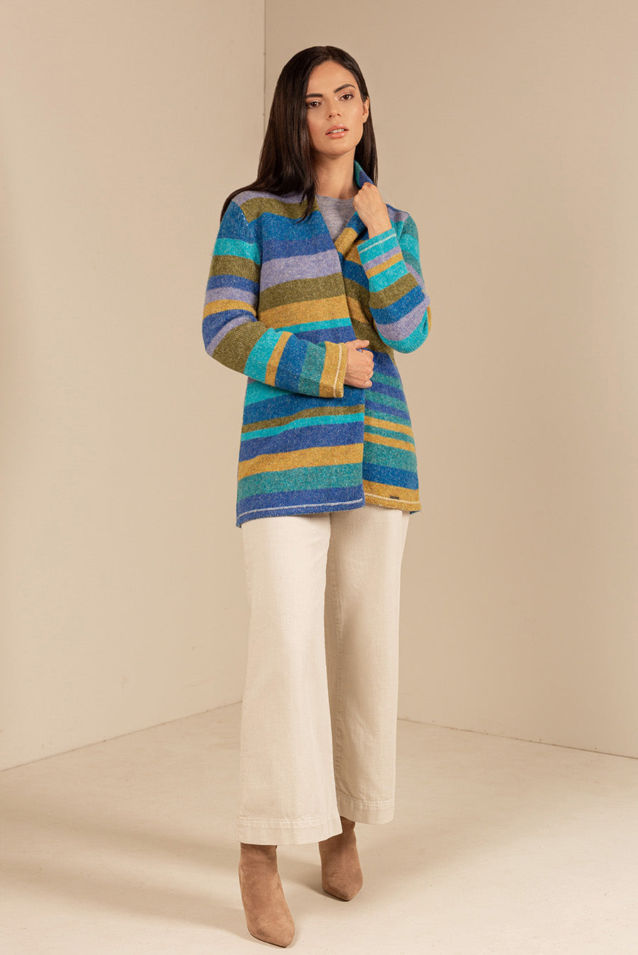 Ideal para añadir un toque único a tus looks, nuestro cárdigan Undercover está adornado con un colorido diseño de jacquard. Las mangas holgadas y el corte recto dan como resultado una pieza sofisticada y sofisticada.