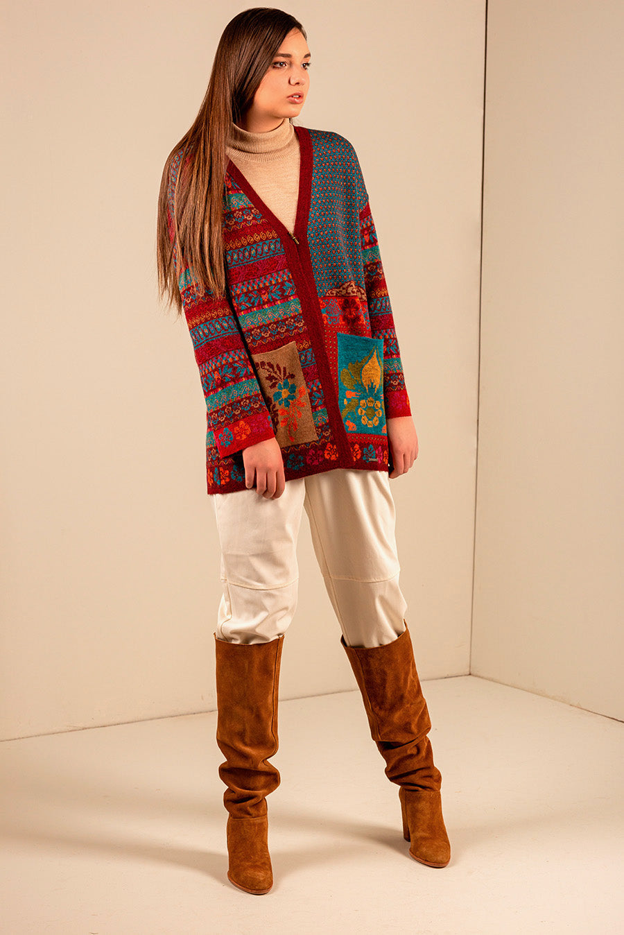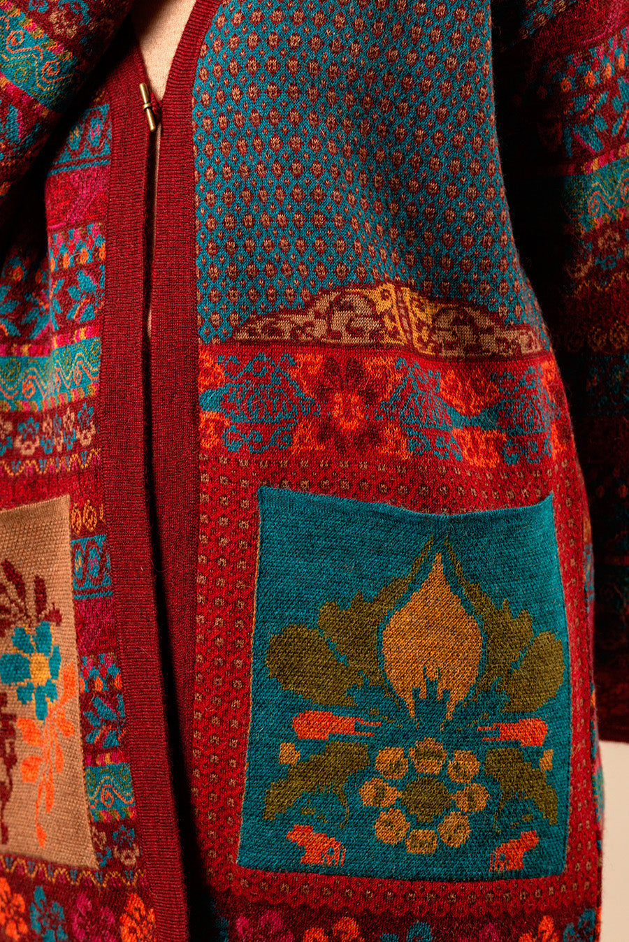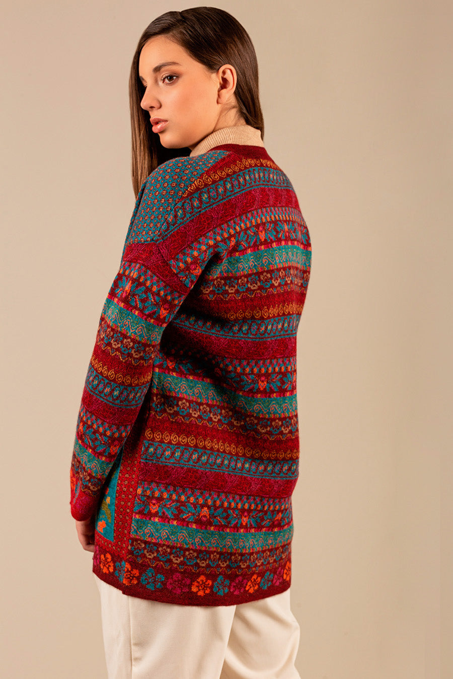 Una de las piezas más emblemáticas de esta colección, nuestro cárdigan Unisson está inspirado en el retablo peruano. ¡Deja que su colorido diseño atraiga todas las miradas!