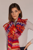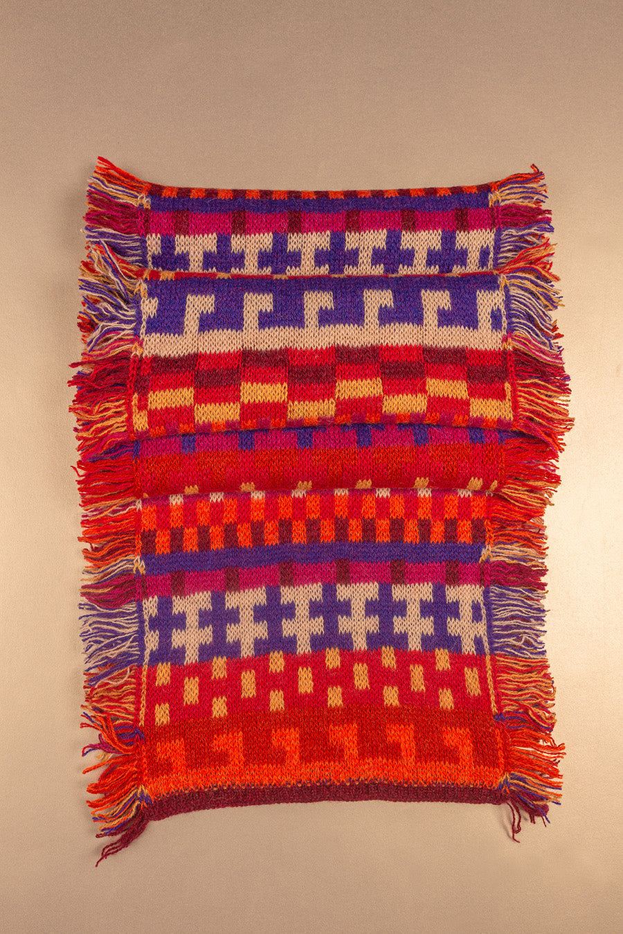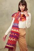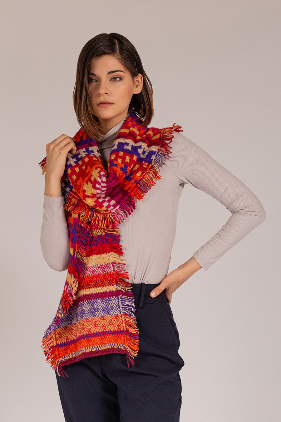 A baby alpaca scarf in bright, cheerful colours and an ethnical design which makes it the ideal addition for any occasion.