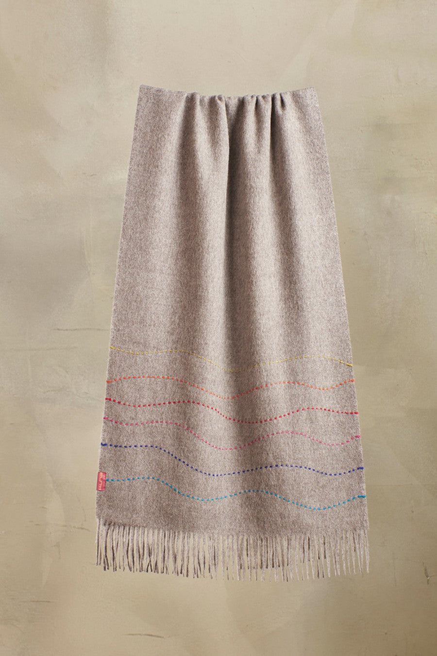 Baby alpaca pashmina in sober tones with delicate color waves. Perfect complement for the day to day.
