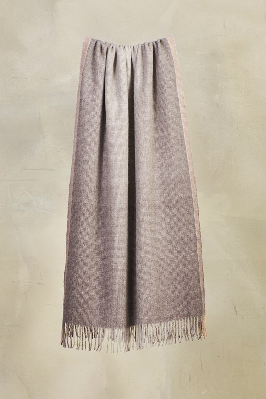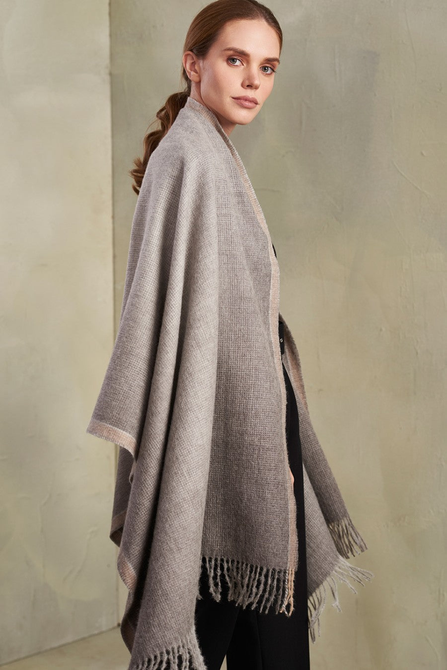 This elegant baby alpaca shawl, with its perfect balance of color, accentuates any look or style.