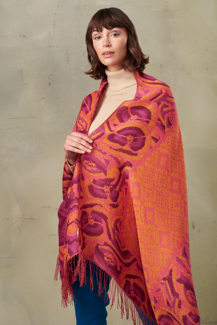 Floral designs and geometric patterns harmonise beautifully on our Teal shawl, a garment perfect for any occasion.