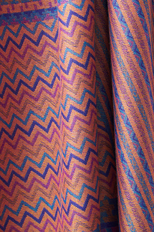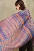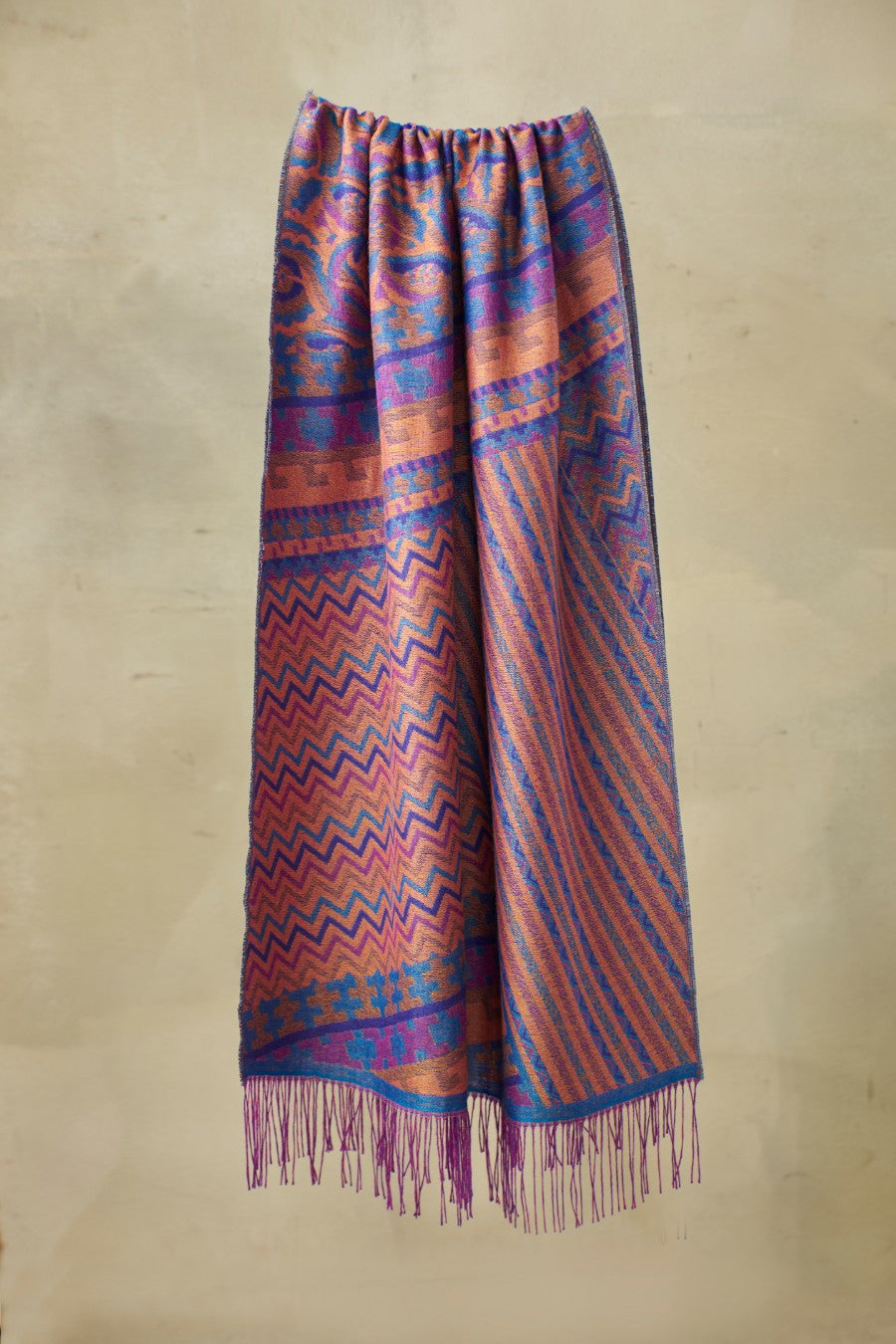 Floral motifs and geometric designs in intense colours on this baby alpaca and silk shawl make it the perfect garment for any occasion.