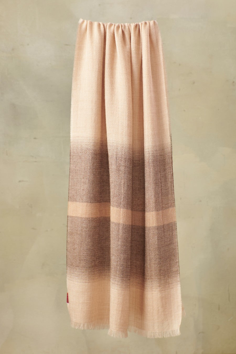 This elegant baby alpaca shawl, with its perfect balance of color, accentuates any look or style.