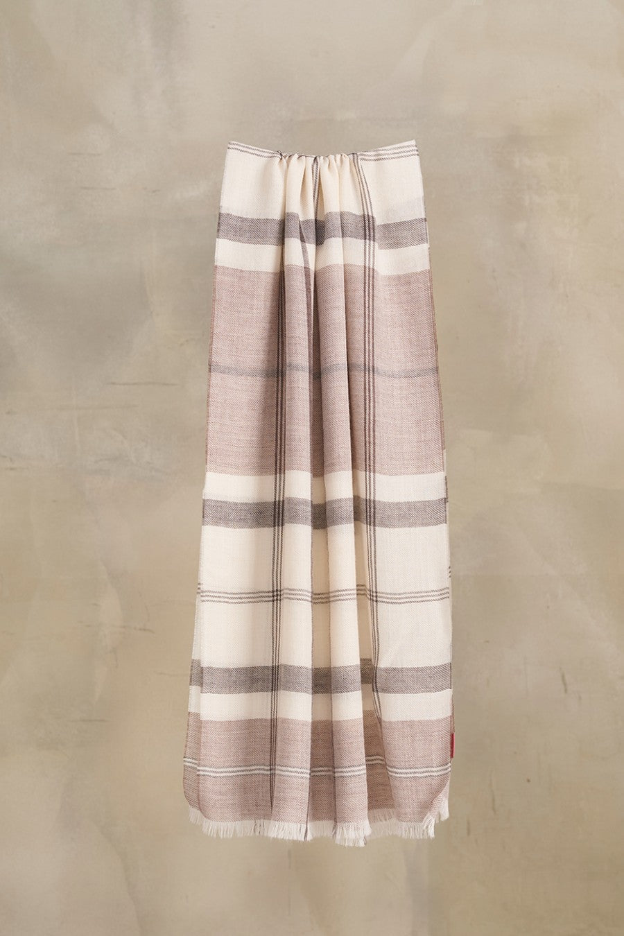 This gingham shawl in neutral colours is made of baby alpaca and can be used at any time.