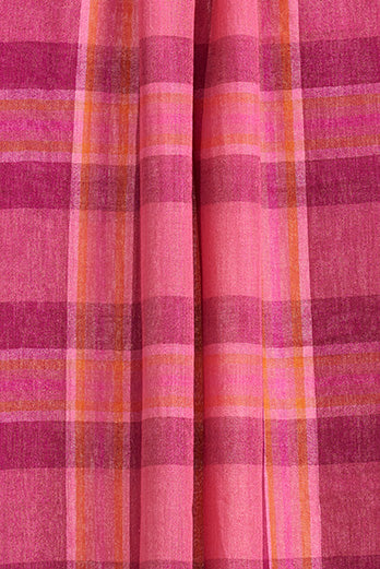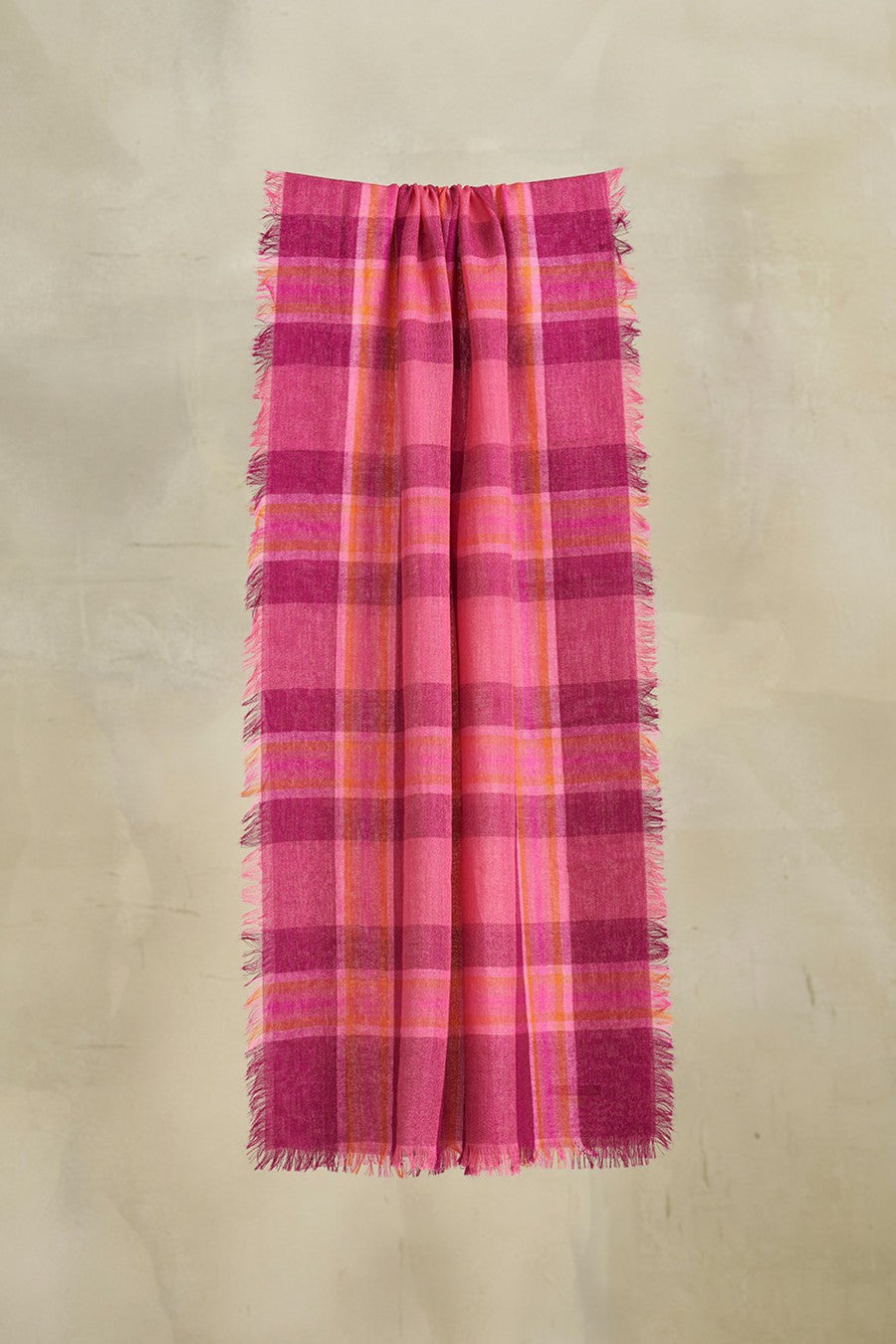 This soft baby alpaca and silk shawl designed in a sobre gingham pattern is perfect for any time of day.