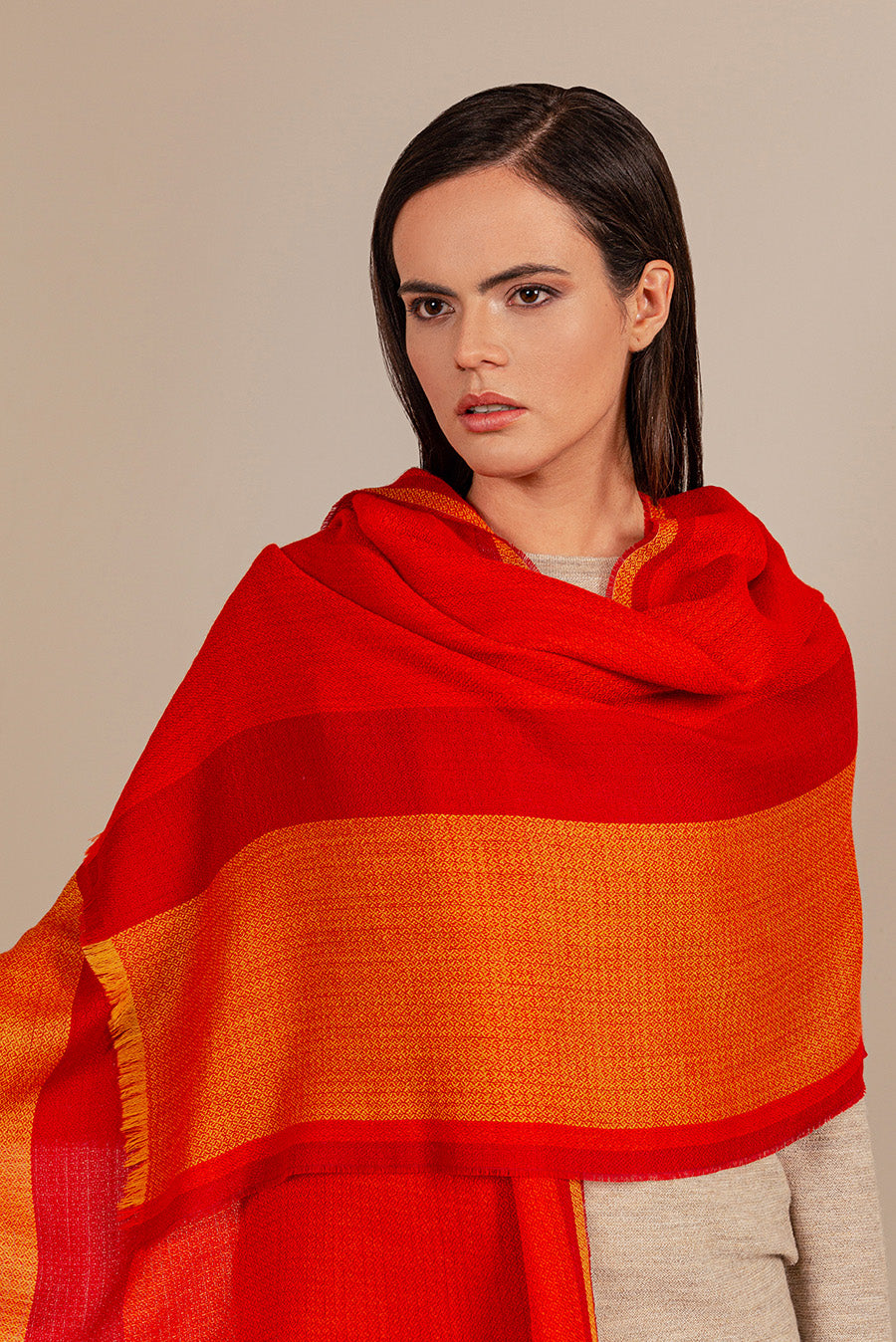 The quality of the materials used at KUNA enhances the style of our Uatuka shawl by giving it a classy touch. The amazingly soft and light texture of this baby alpaca fabric gently glorifies this season´s colours.