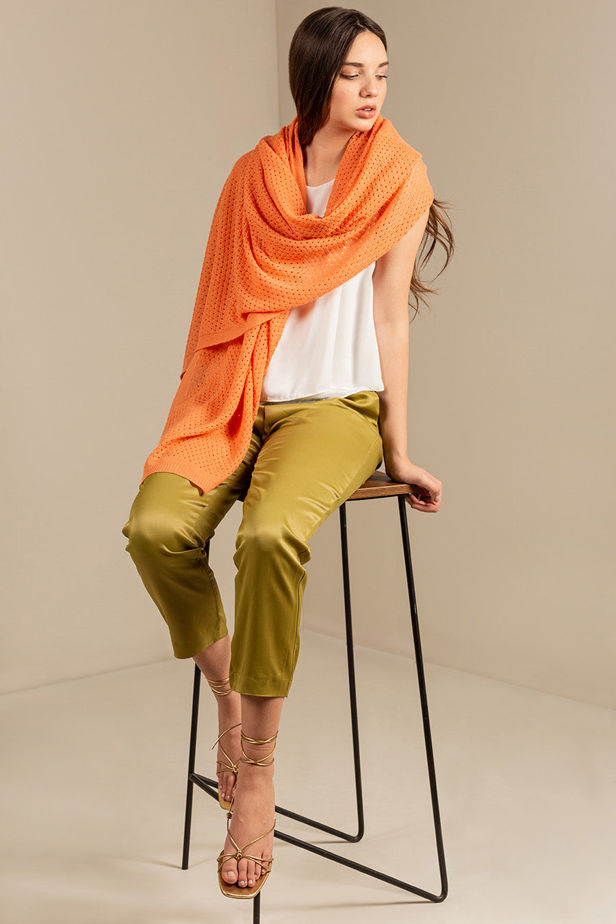 Great for breezy summer days, our Ueco shawl is made of an exclusive translucent fabric, characterised by the quality of the natural fibres used in all of our KUNA products.