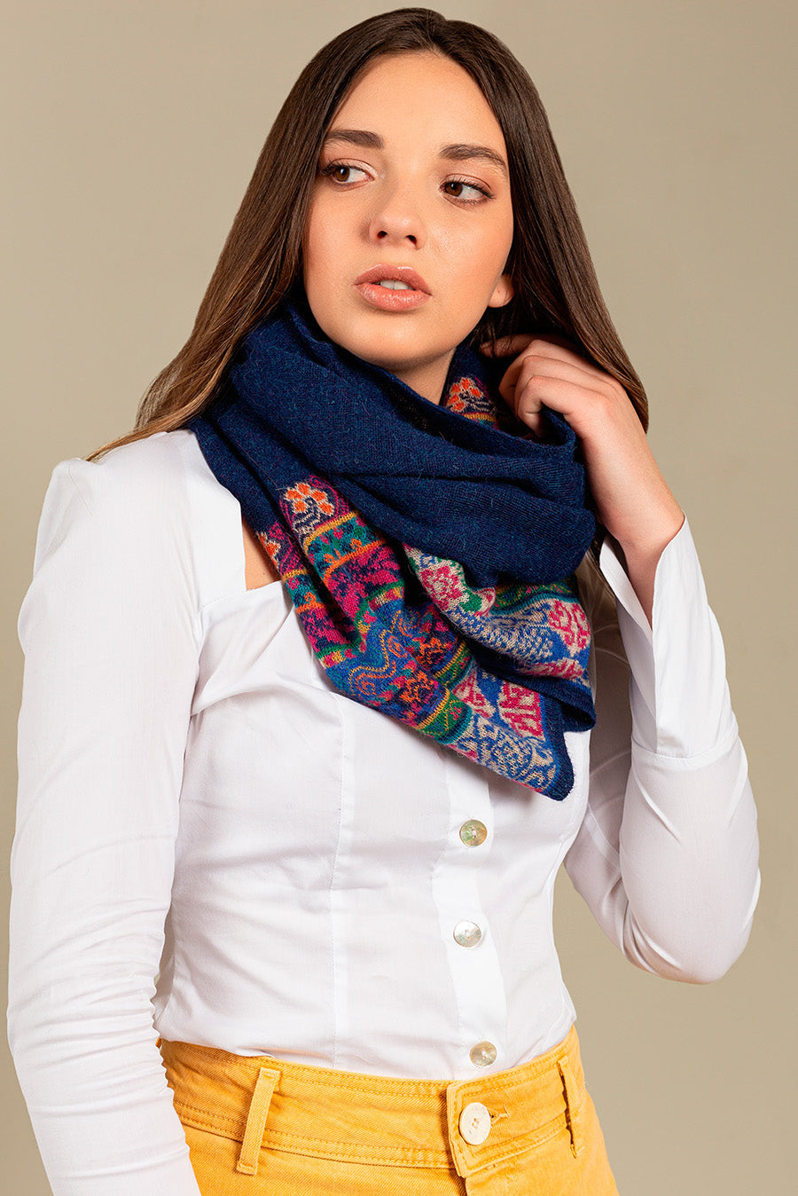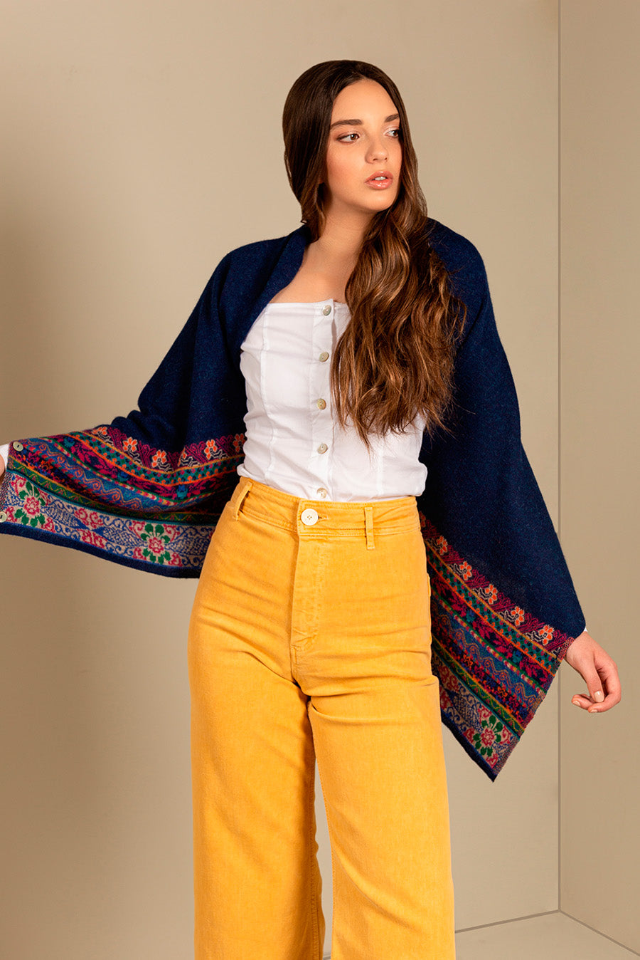 This accessory is truly versatile. Wear it as a shawl, cape, vest, poncho, infinity scarf and more. Add more styles to your wardrobe with this incredibly soft piece that reinterprets the traditional style of knitted garments. The jacquard design makes it even more unique.