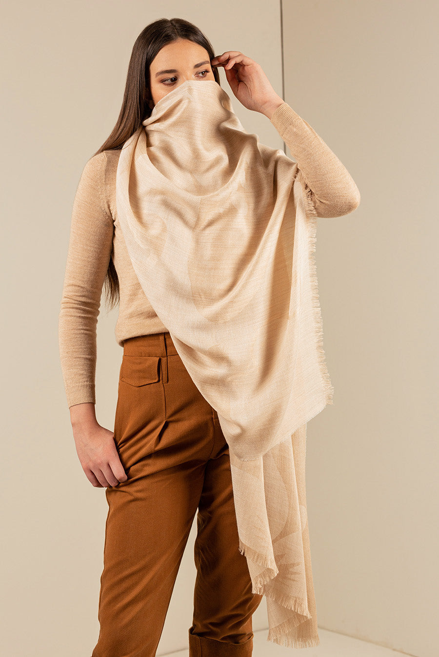 Made of a delicate blend of baby alpaca and silk, our soft Urbe shawl features a beautiful floral design.