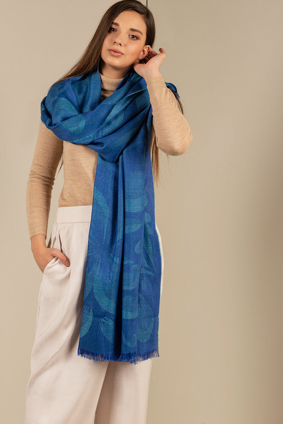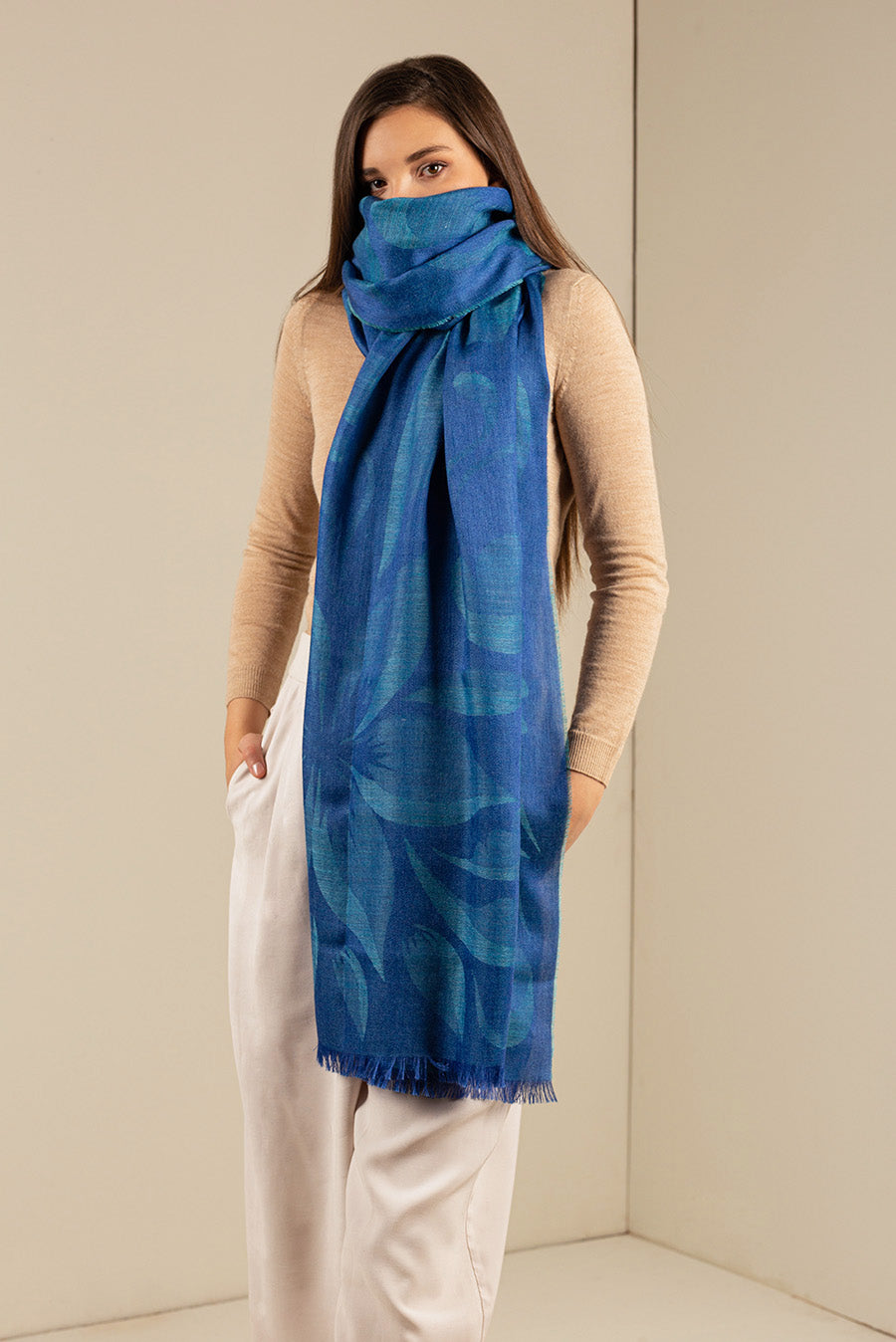 Made of baby alpaca and silk, our Urday shawl is soft and light. The floral design makes it the perfect accessory for a sophisticated look.