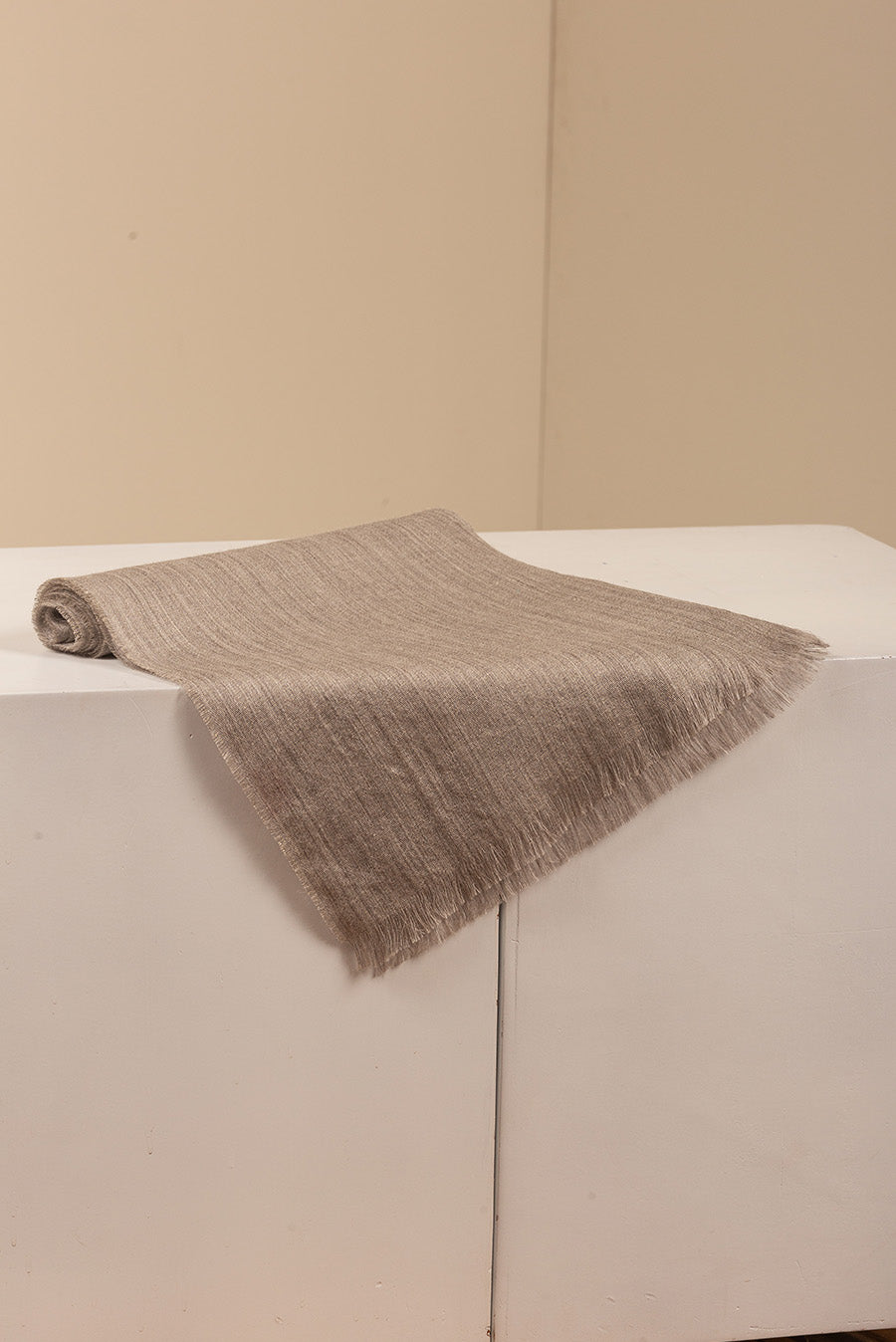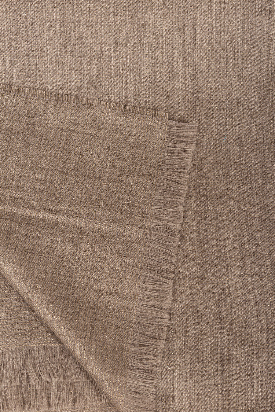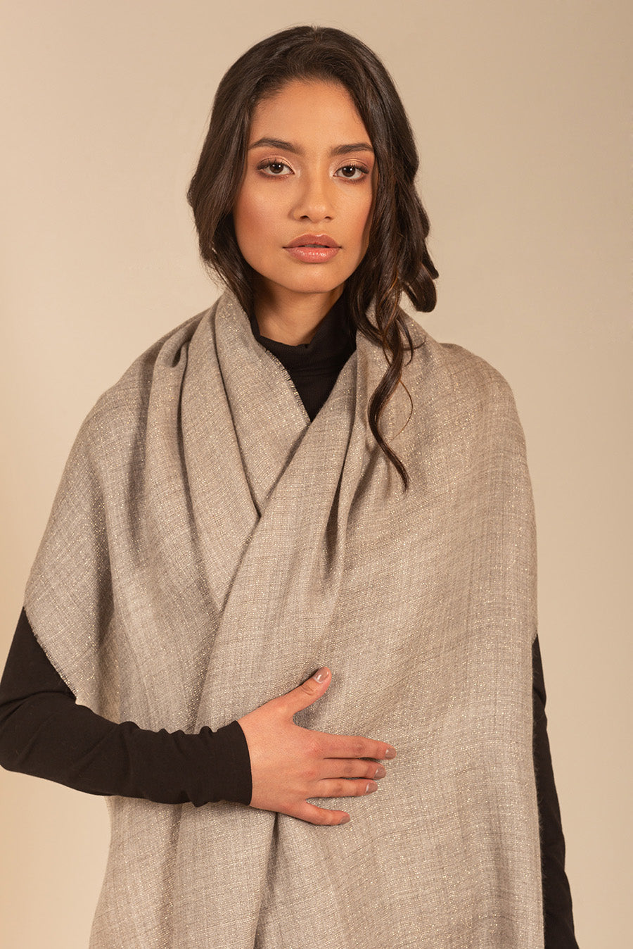 The quality of our materials exalts the style of this special stole with a refined touch. The shimmering reflections displayed by the lurex yarn merge with the soft and enveloping effect of the noble natural fibers of baby alpaca and silk. A sophisticated accessory that enhances feminine charm.