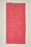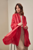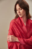 Elegant pashmina in baby alpaca and silk, with colorful graphics inspired by Peruvian retablos.