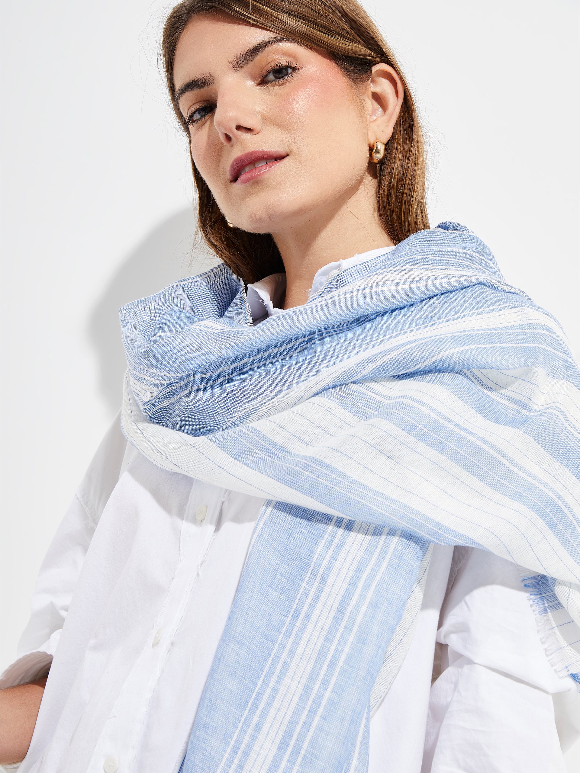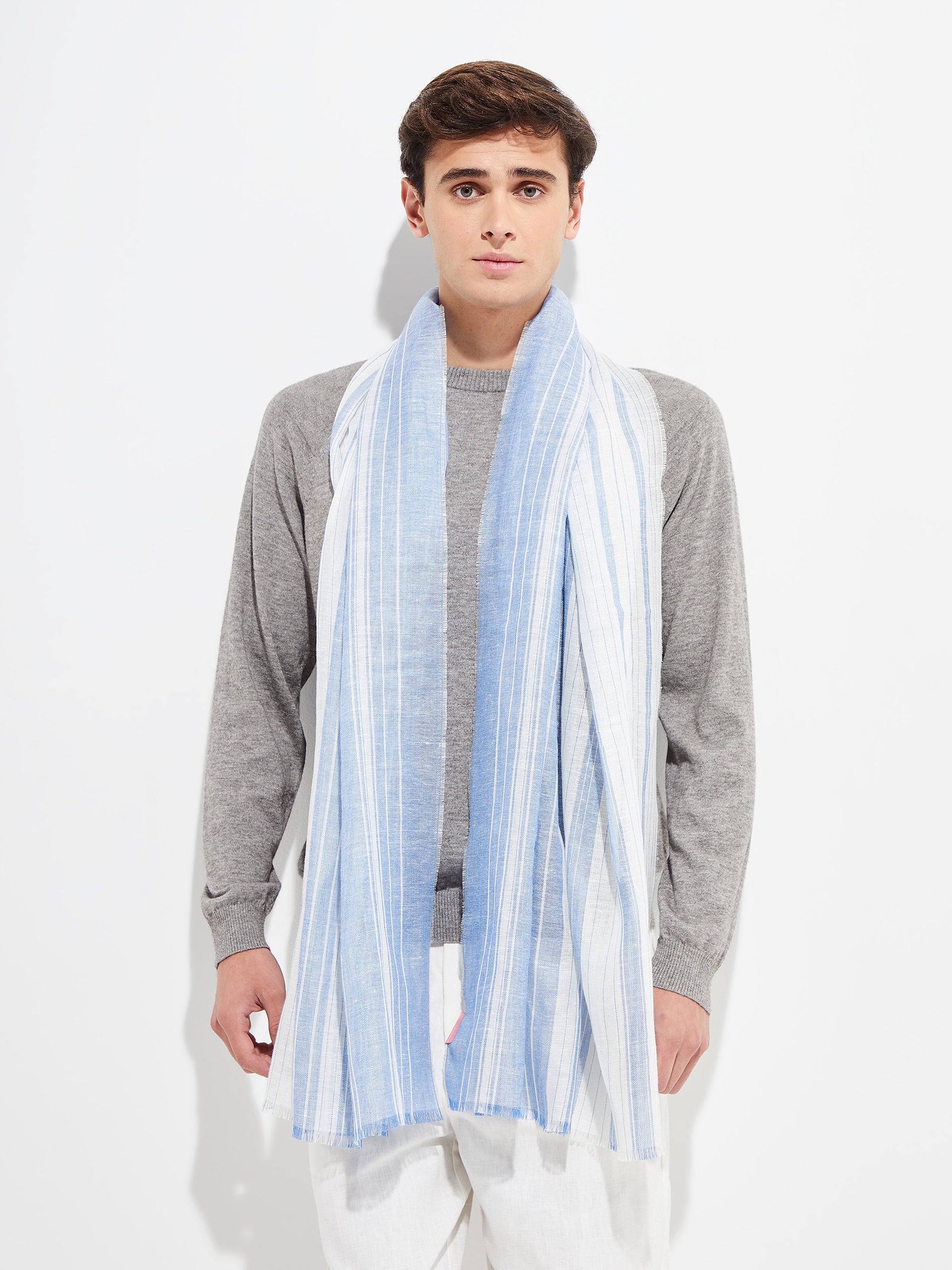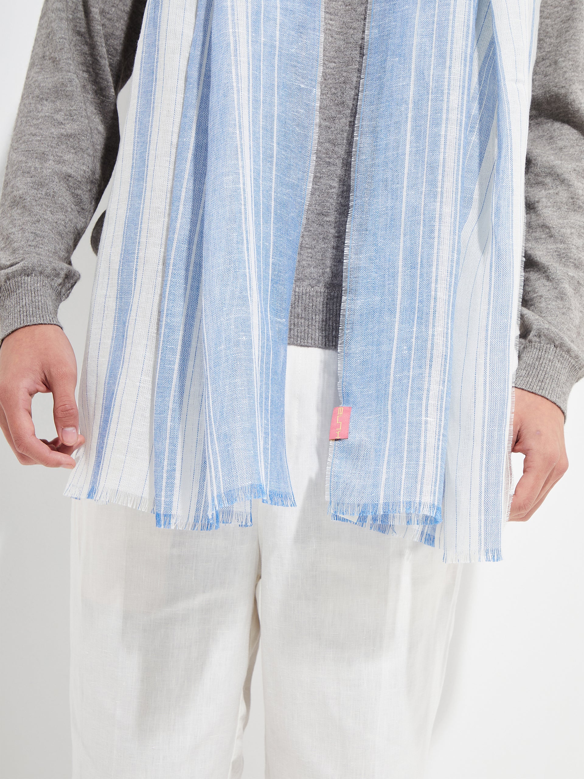 Made from a fine combination of baby alpaca, silk and linen, the Yoga stole is an essential garment that cannot be missing in your wardrobe. Available in three shades. It offers a striped design that gives it a contemporary and timeless look. Its softness and warmth make this stole a perfect choice to complement any outfit with distinction. | Predominant material: Linen