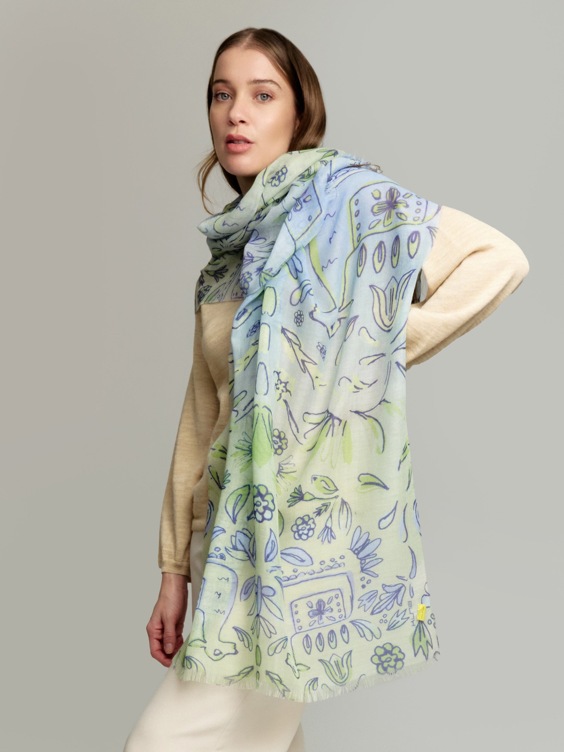 Immerse yourself in the freshness of our Yovela stole. With vivid colors and captivating designs, this accessory is made of baby alpaca and silk, a soft and lightweight combination that gives your skin a unique feel. Perfect for giving a vibrant and colorful touch to your looks, this stole adds style and comfort to your winter wardrobe. | Material predominante: Baby Alpaca