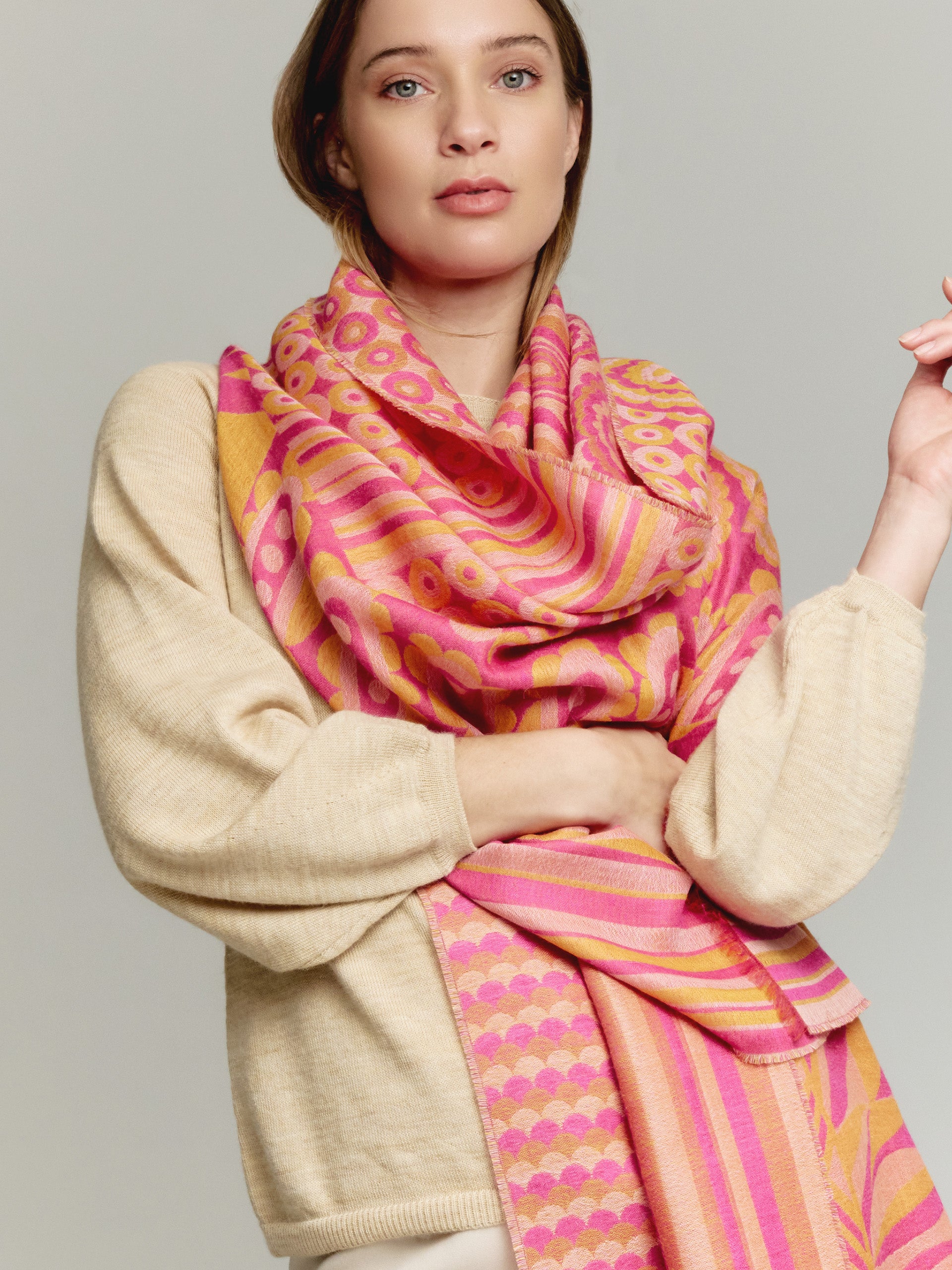 Discover the Ysily stole, a touch of color for your cold winter days. Its softness and boldness make it unique. We fuse the refined fibers of baby alpaca and silk to provide a skin-on-skin feel. This warm accessory is available in three shades, adding style and comfort to your winter wardrobe. | Material predominante: Baby Alpaca