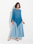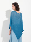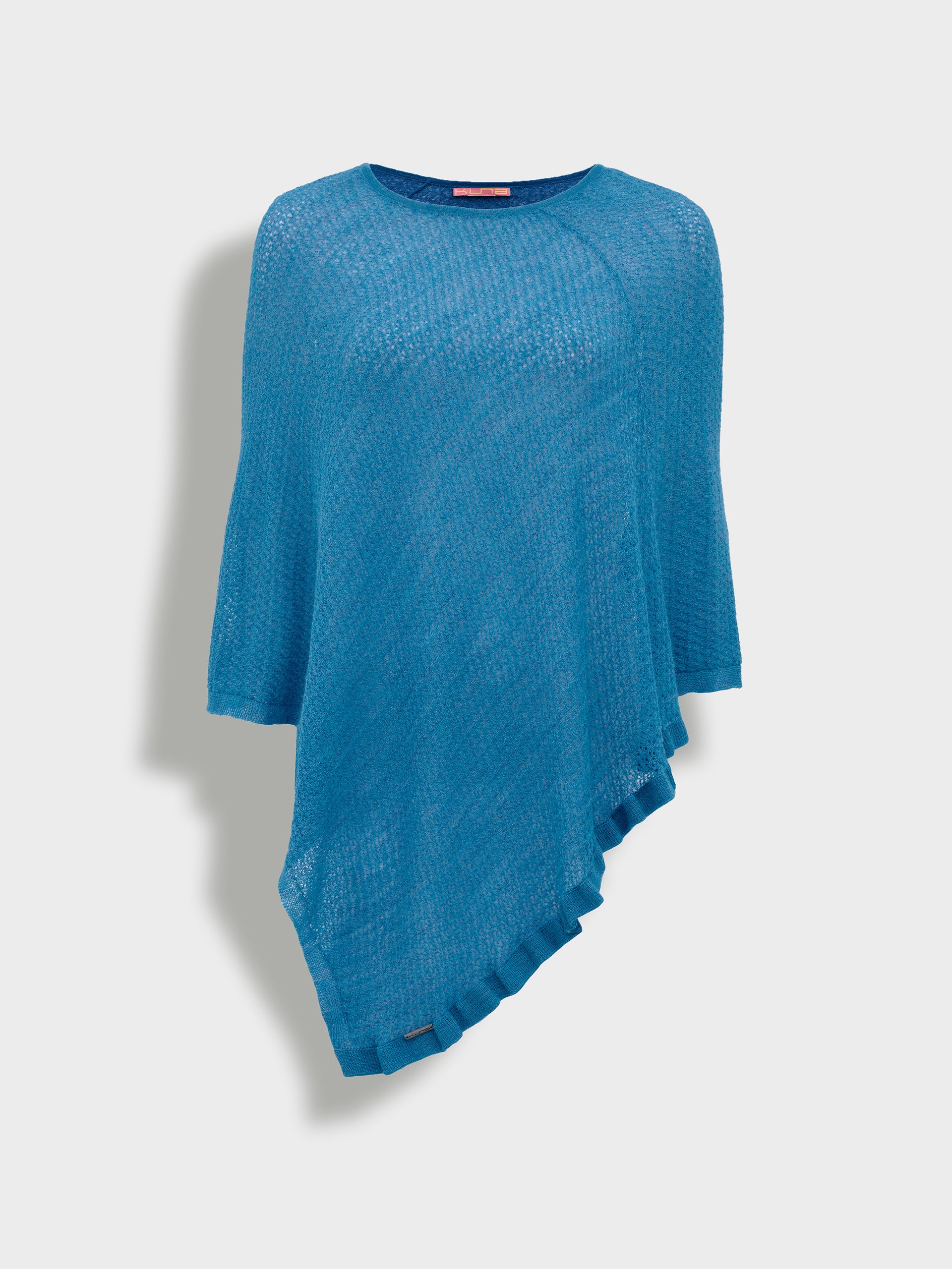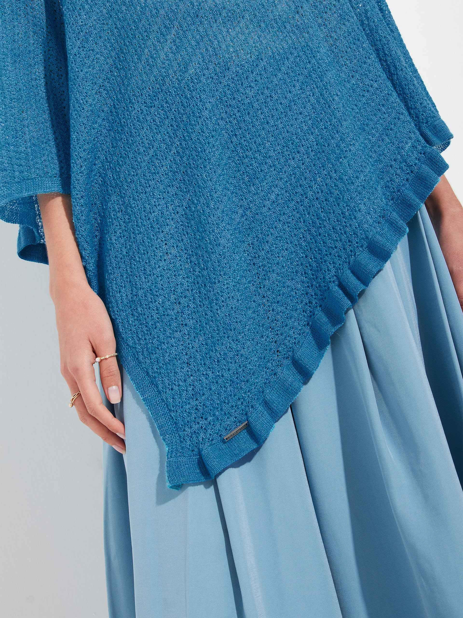 Zaeta blue cape, made from baby alpaca and silk. It is a closed poncho with delicate ruffle details that add movement and femininity to its design. | Predominant material: Baby Alpaca