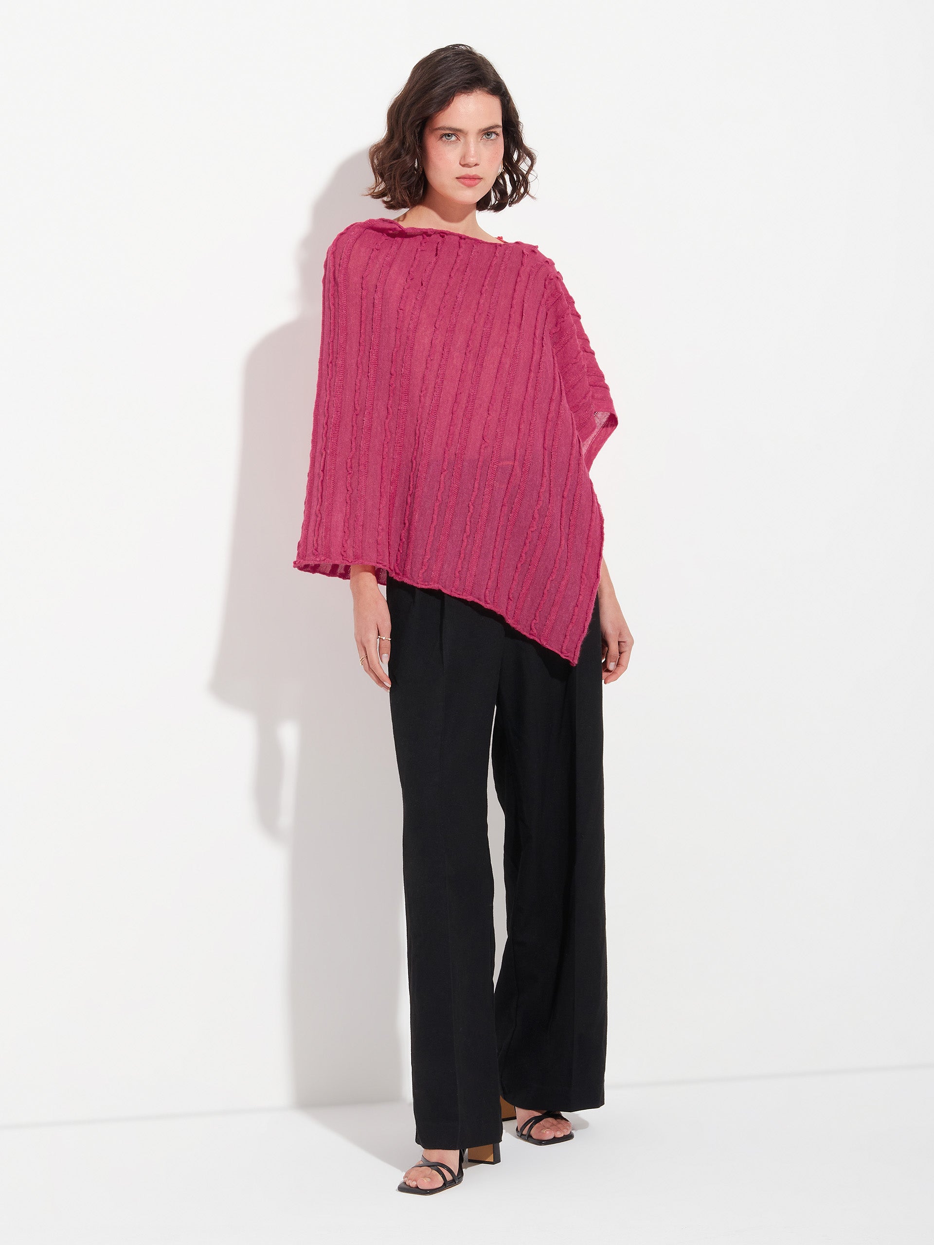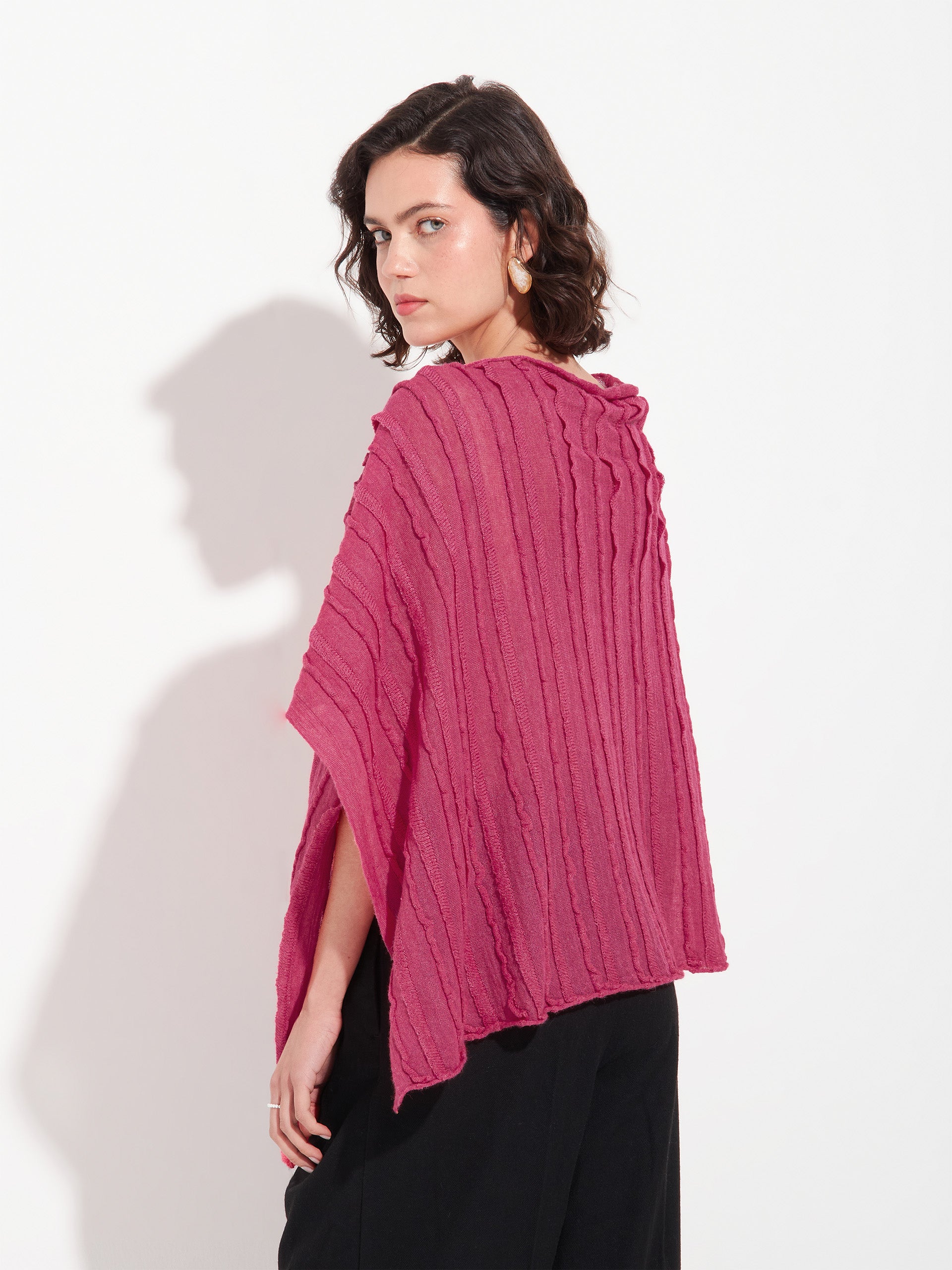 Zarina poncho in beige, made from baby alpaca and silk. It is a closed poncho with a subtle raised stitch that adds texture and an elegant finish. | Predominant material: Baby Alpaca