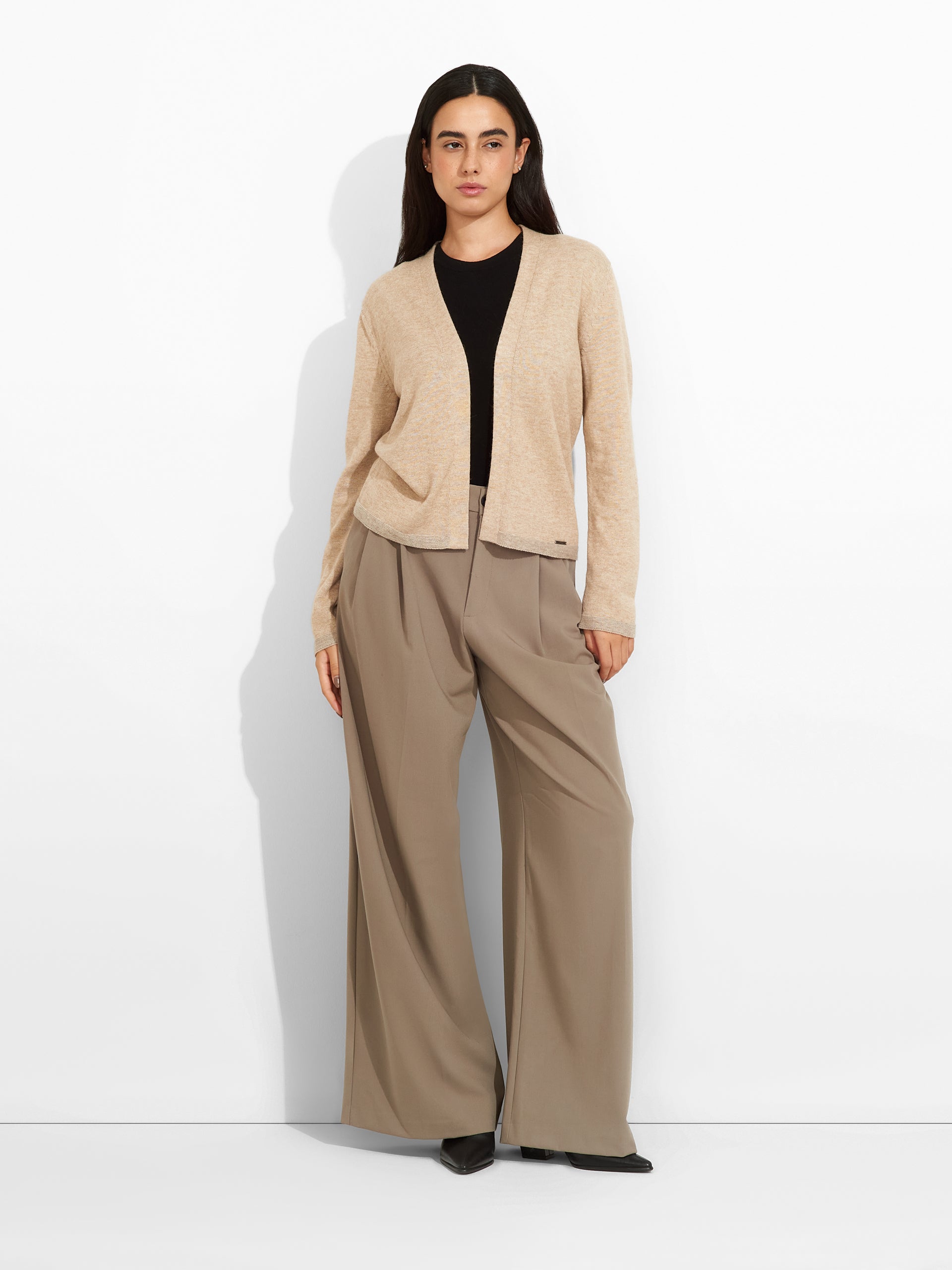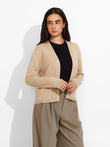 Zoraya Cardigan in beige tone, with an open design, no buttons or closures, and a V-neckline. Crafted from a blend of cotton and baby alpaca. | Predominant material: Cotton
